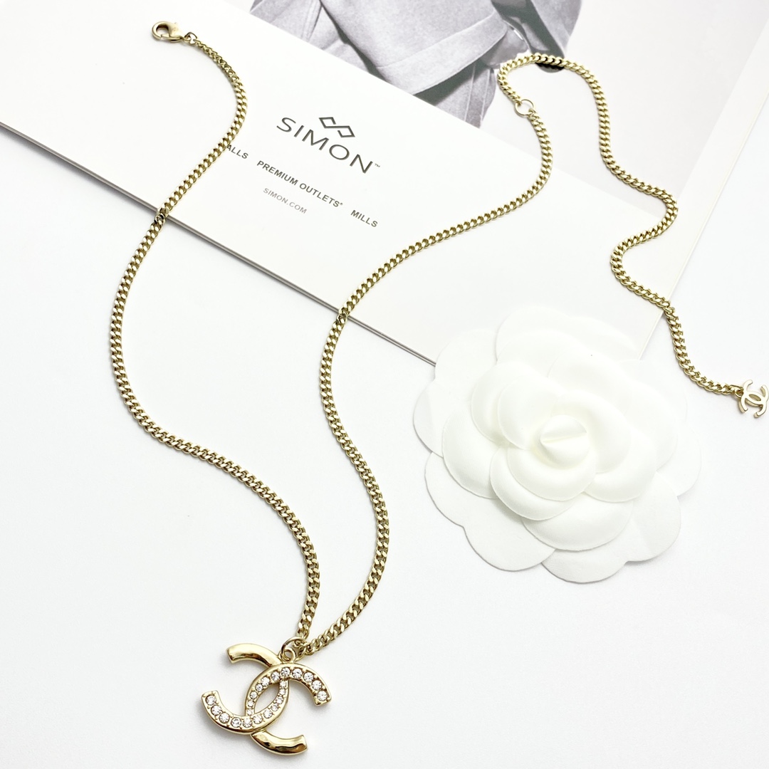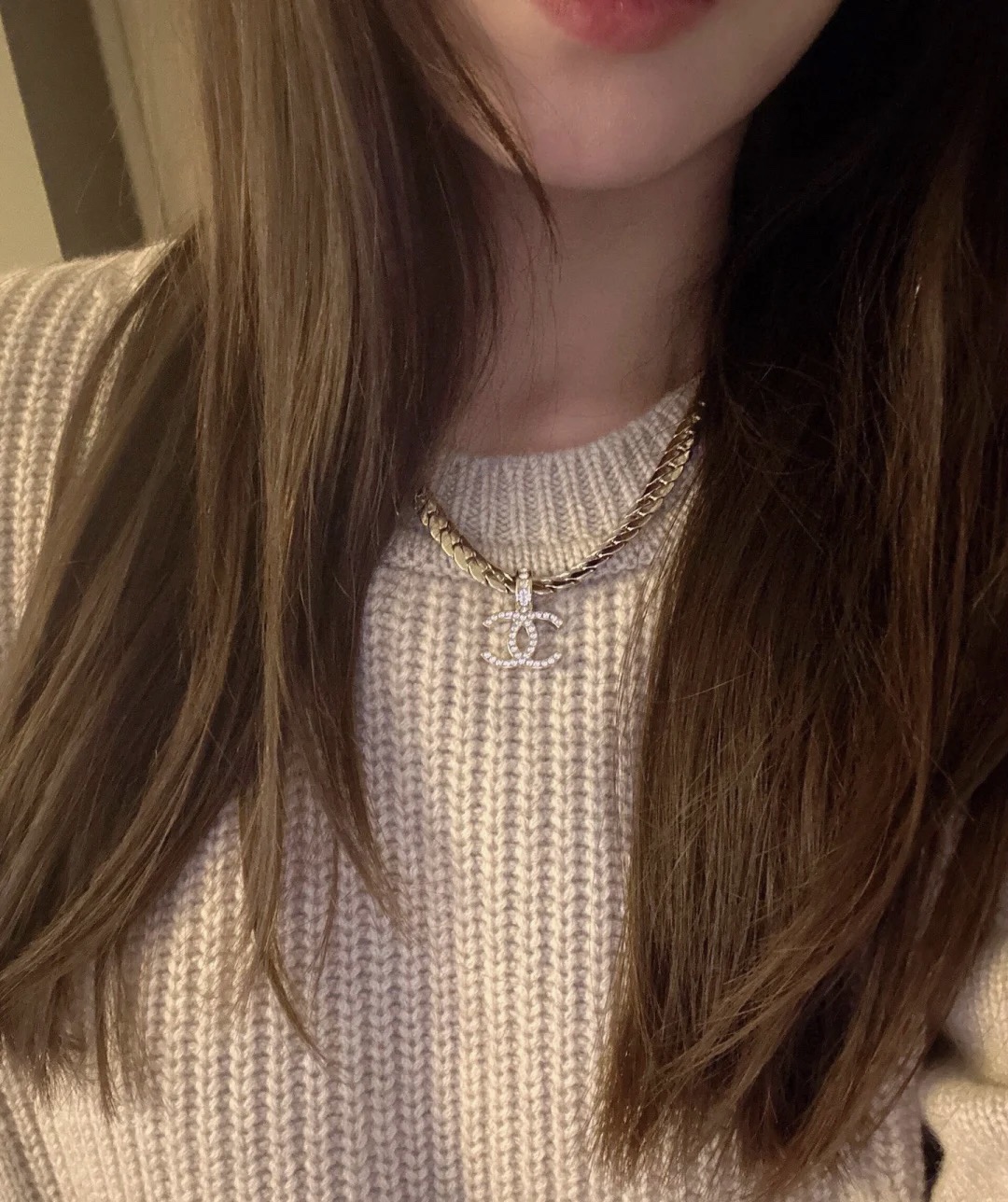 p90 Chanel necklace is hot selling and the new CHAN 24 Square Diamond Double C Sweater Chain 🤓The necklace shows