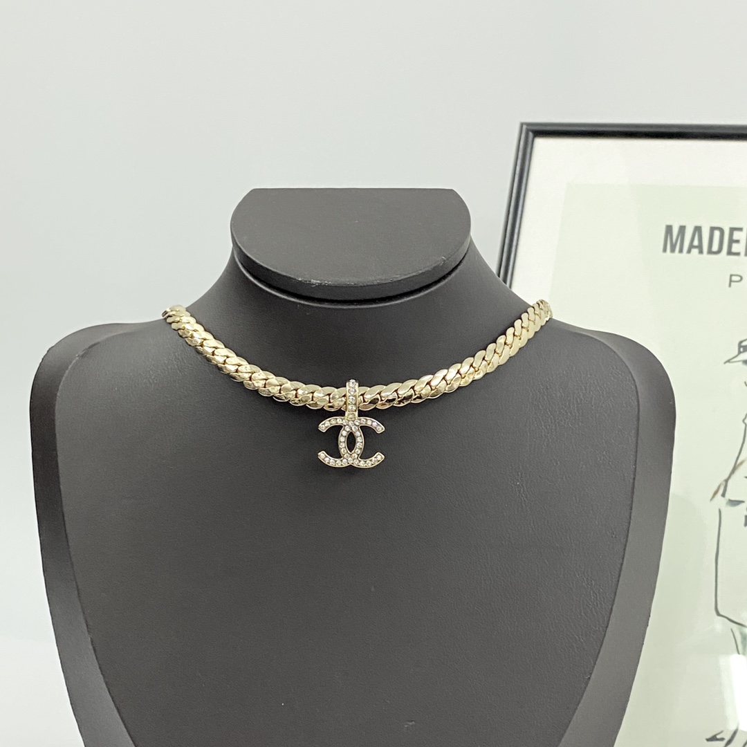 p55 Chanel necklace is hot selling and the new CHAN 24 twisted half diamond double C necklace🤩Retro champagne gold concave