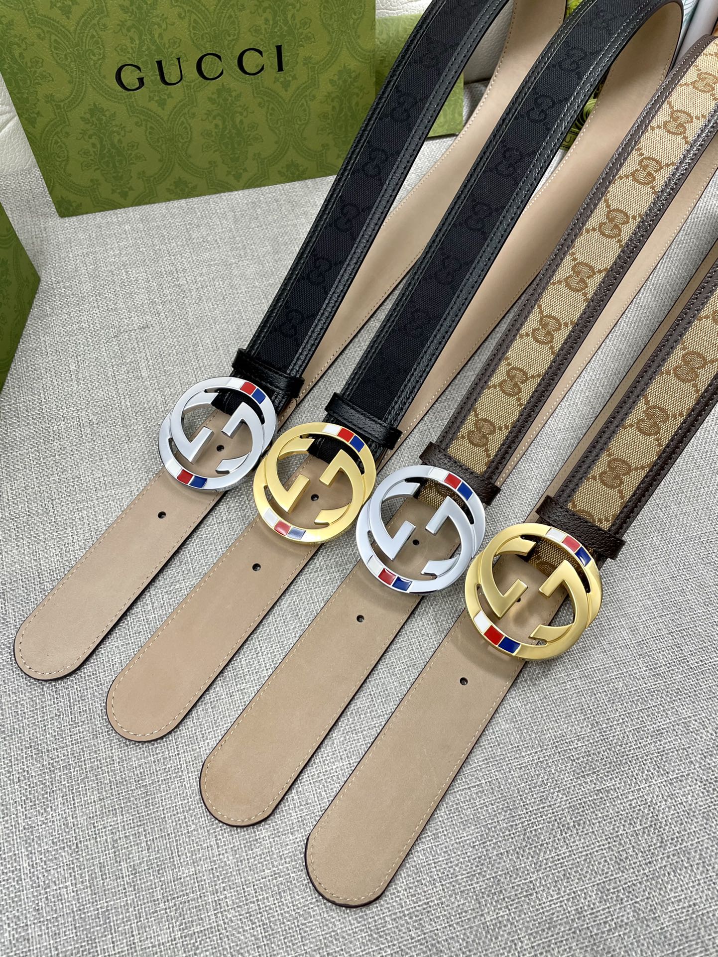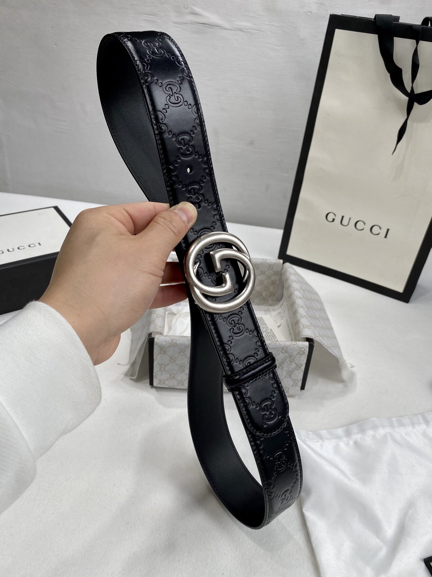 Gucci: Original single-layer cowhide with pebbled surface. Lined with first-layer calfskin. Bottom: with original single buckle, customized original leather, counter