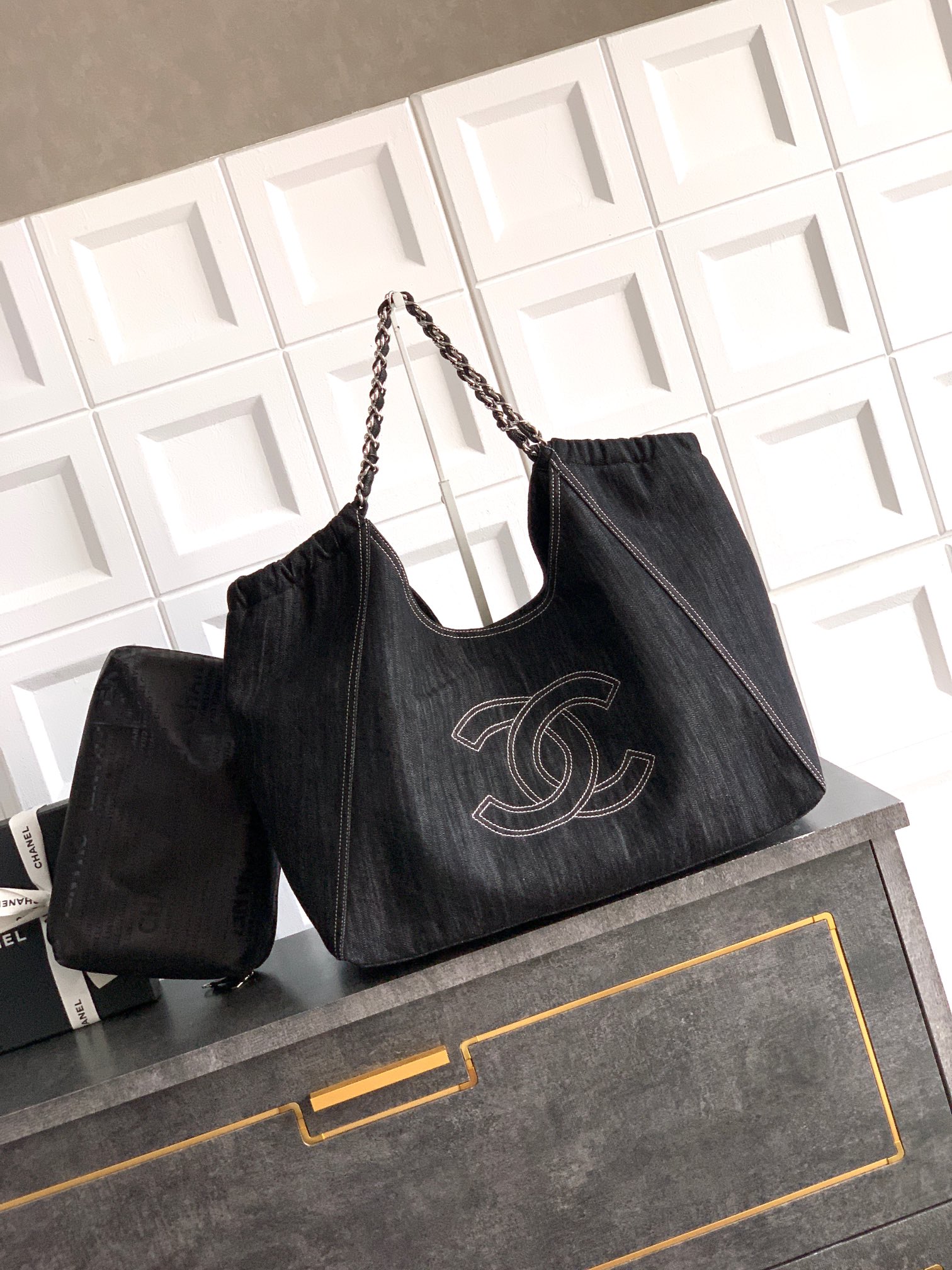 Bag Chanel 85 large size “Dark Night Black” OHANEL denim tote bag 🤩🤩 Western style and versatile
