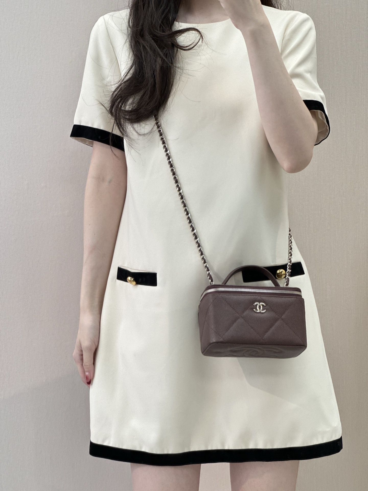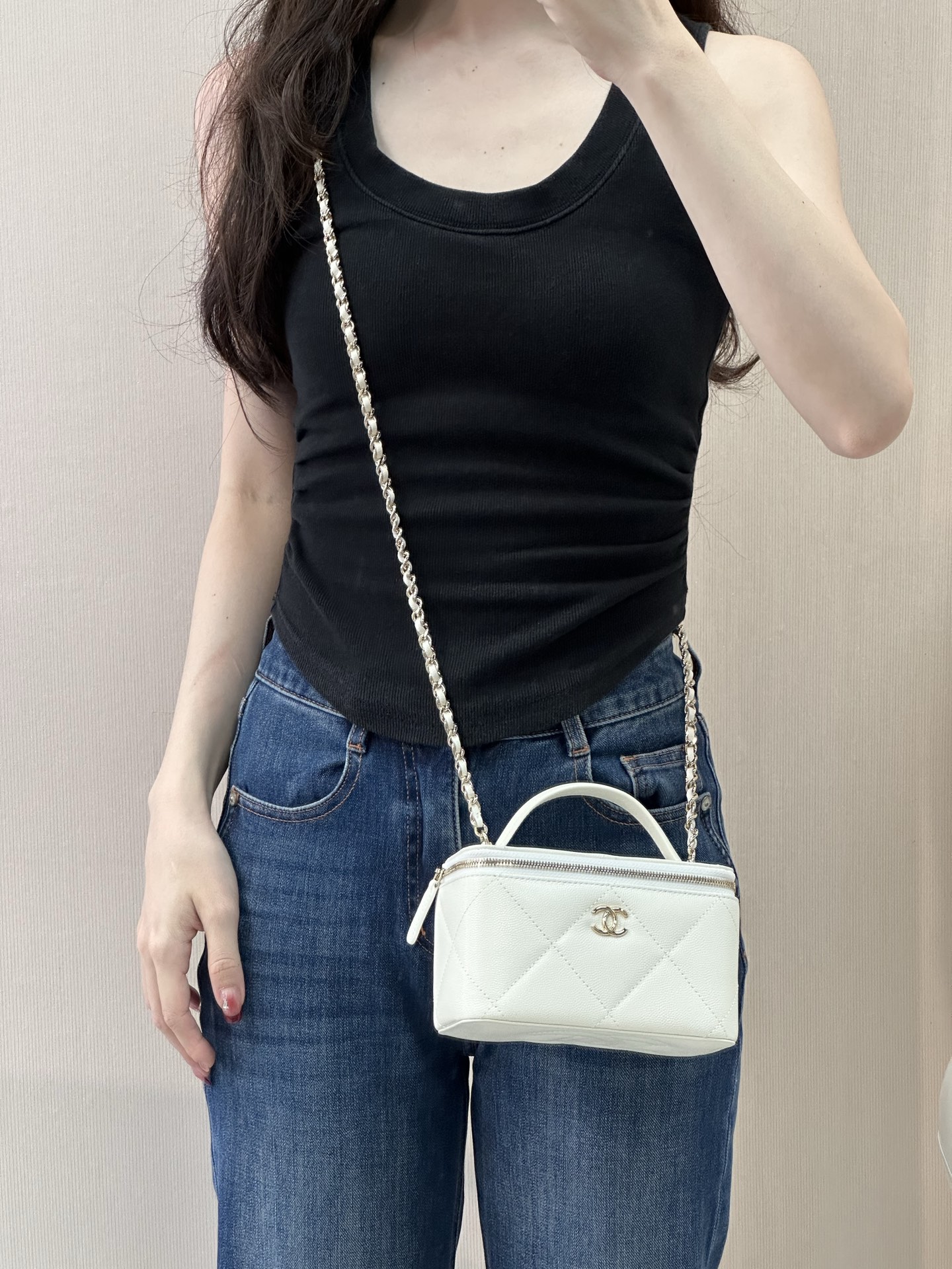 Bag Chanel 5 433 The apricot color is such a gentle color ~ I’m used to looking at black, so switching to the apricot color makes people’s eyes brighter