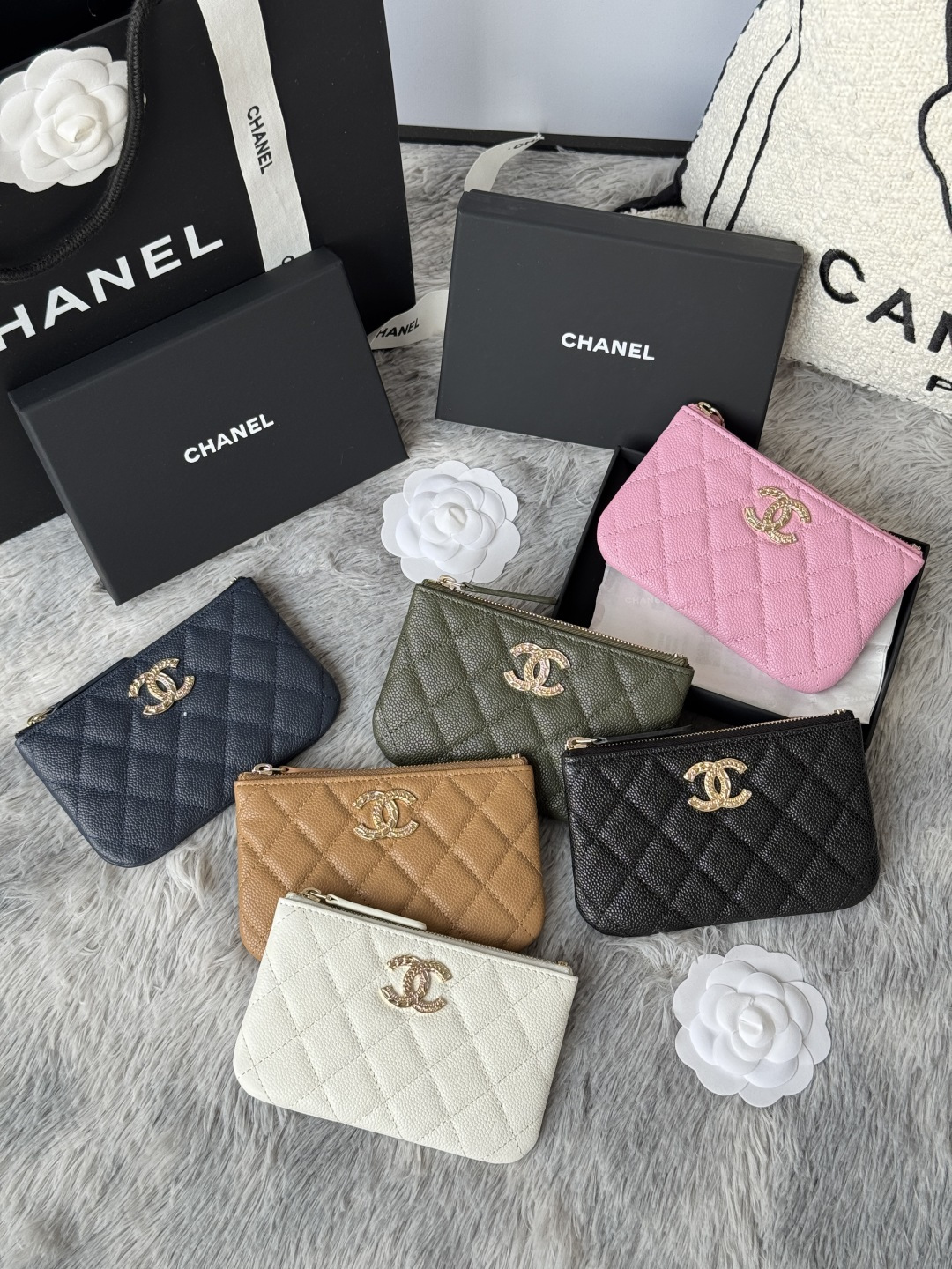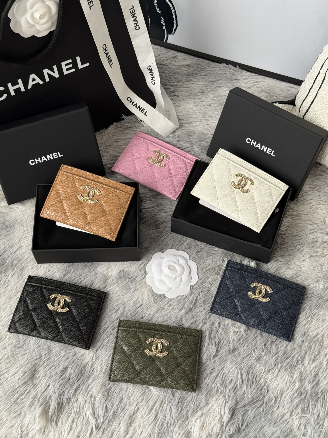 Model AP48 CHANEL 22k embossed lgo large double C hardware, official website 2023 latest card holder, caviar medium ball grain