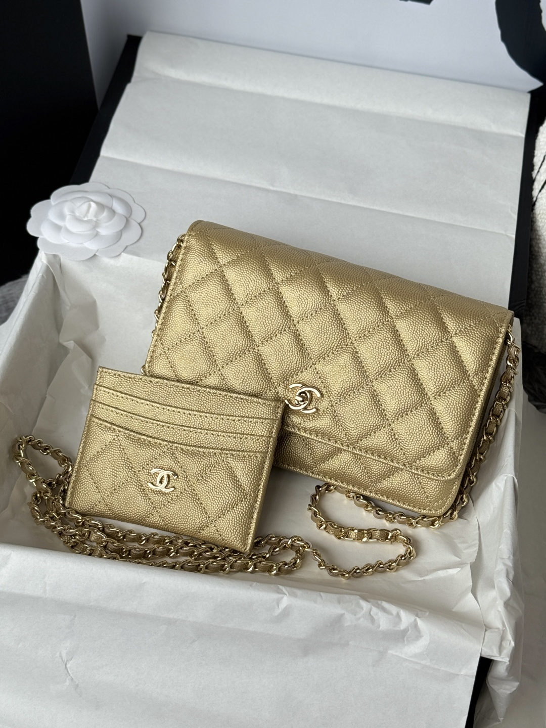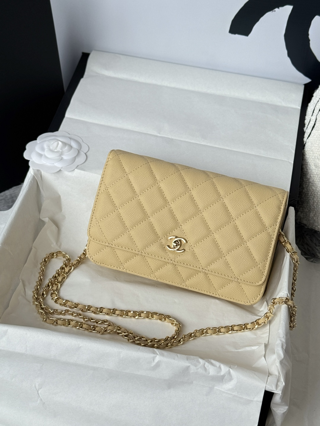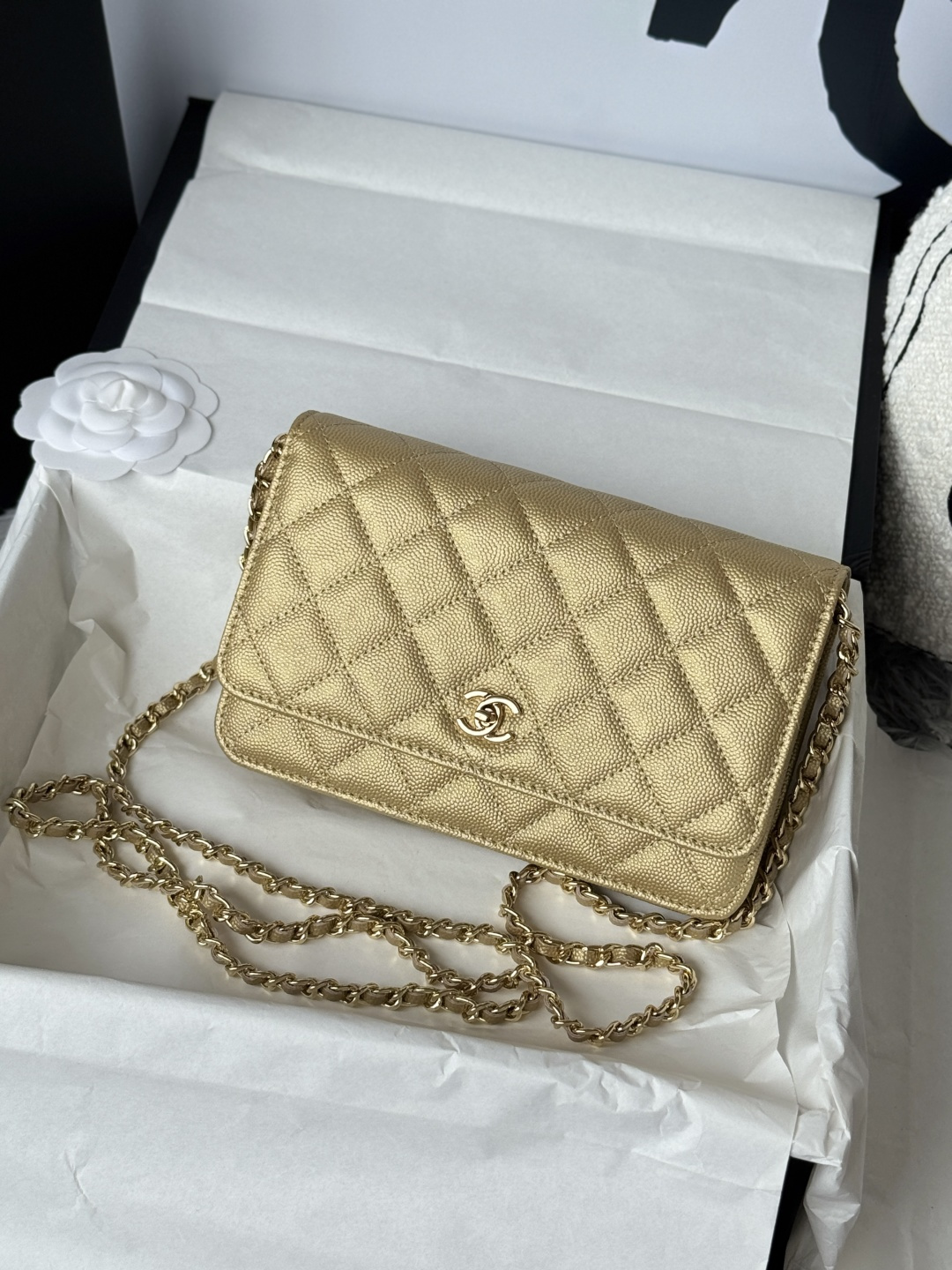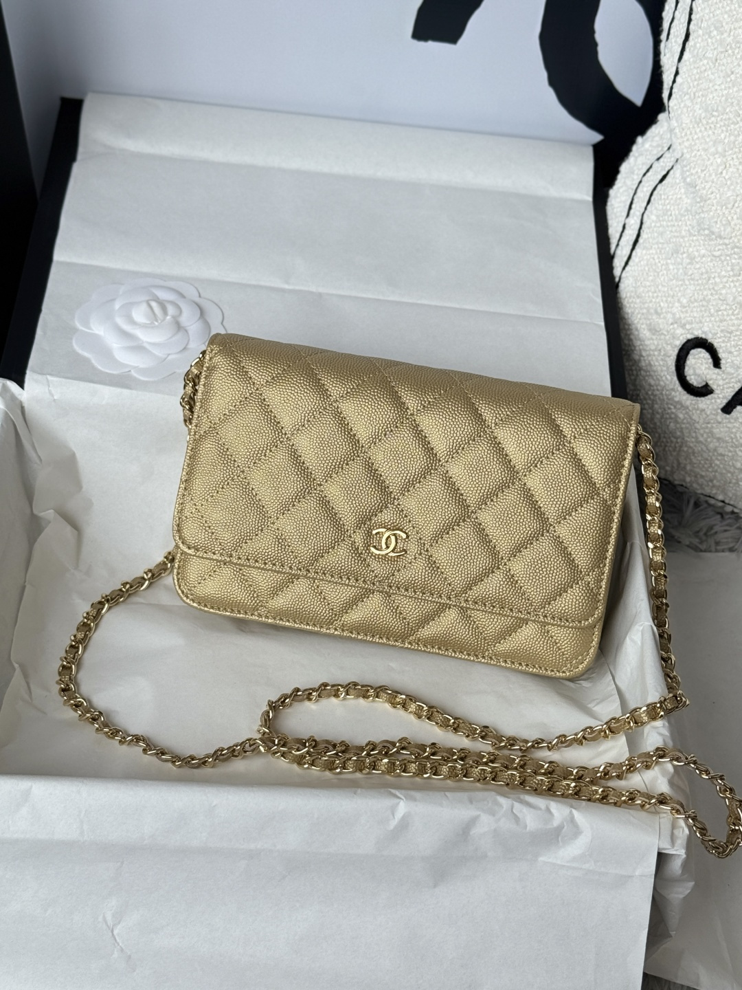 Bag Chanel New version of WOC fortune bag, magnetic buckle, imported original caviar gold color, cowhide