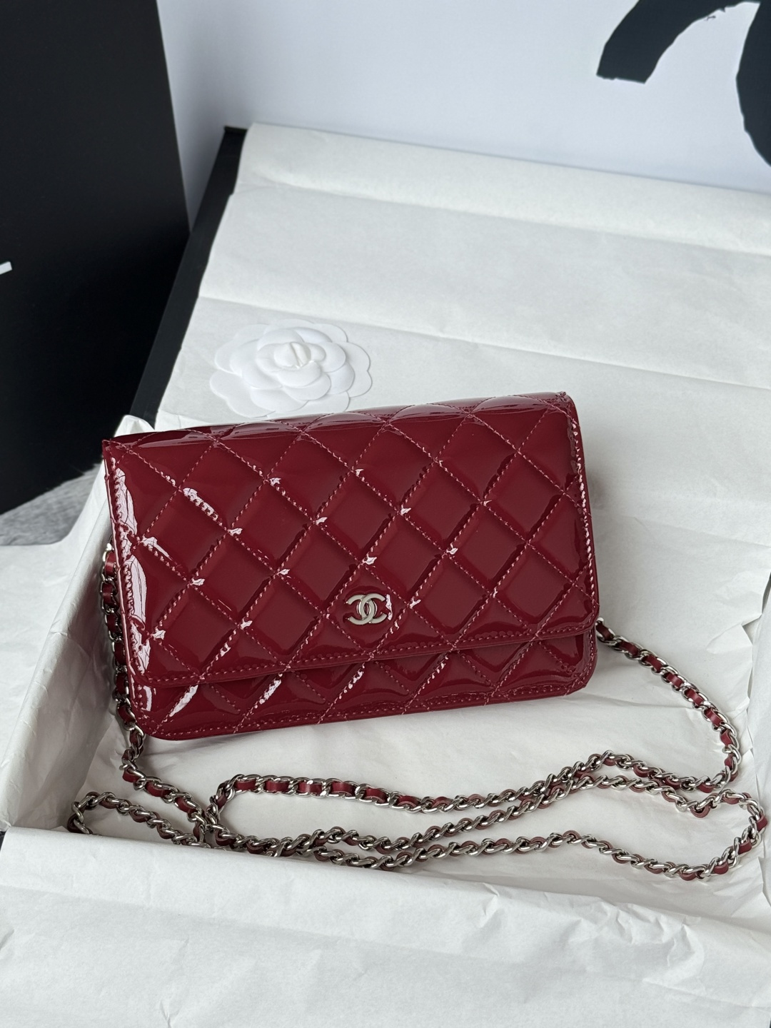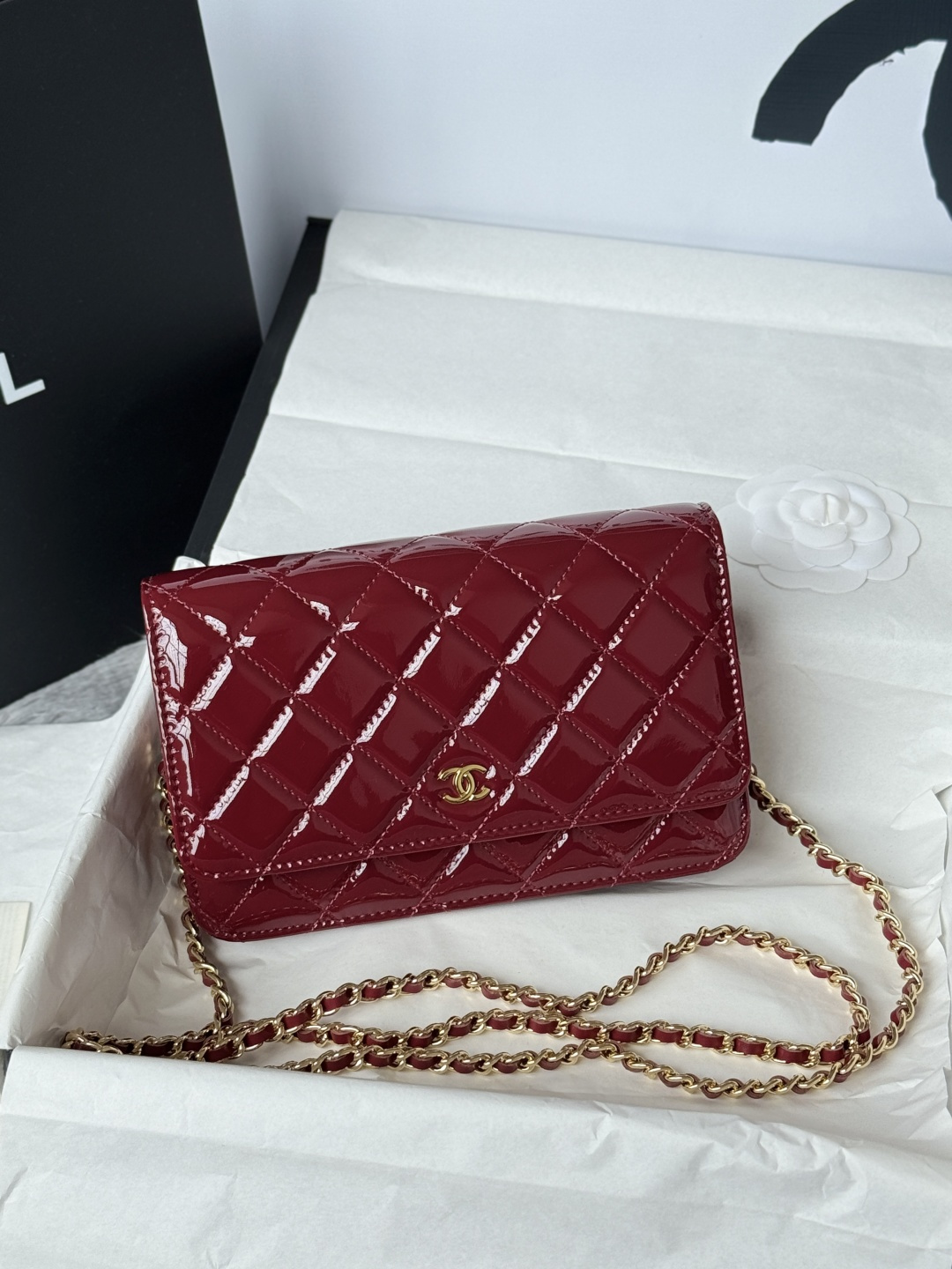 Bag Chanel New version of WOC fortune bag, magnetic buckle, made of cowhide, patent leather – bright