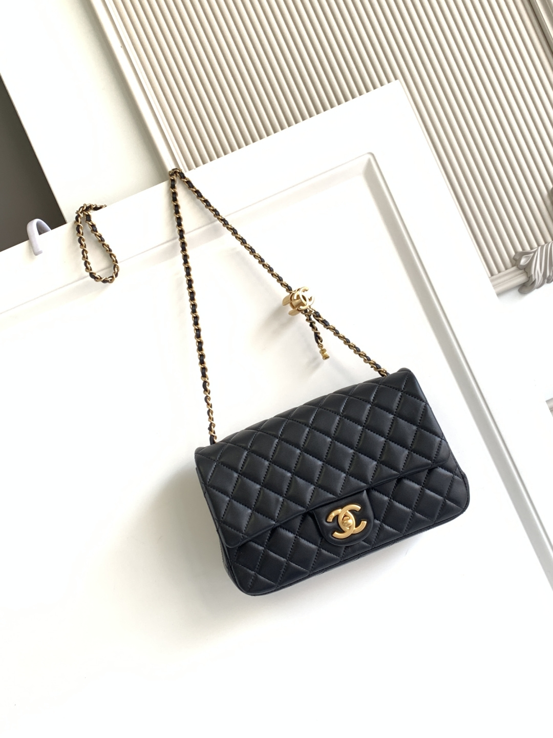 7 5759 Medium CHANEL 25b Double C Adjustable Buckle Square Fat, Returned Double Logo Chain Bag Retro-style glossy sheepskin, it