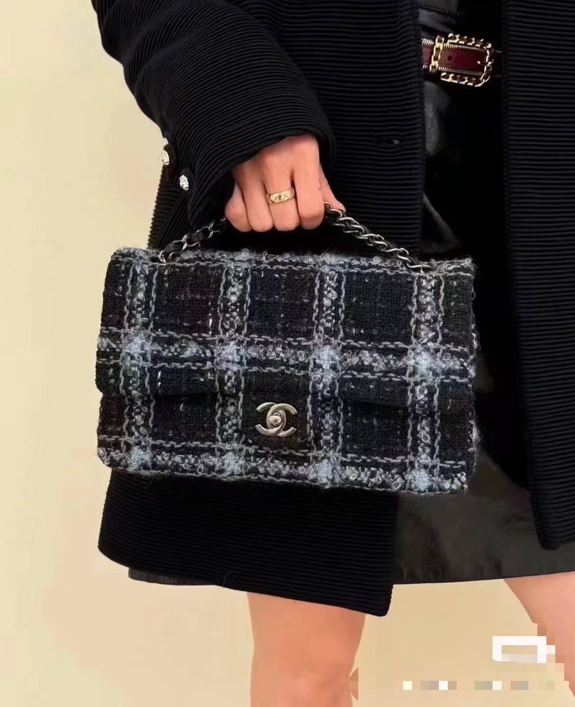 950 OHANEL24 K New Black and Blue Plaid Woolen CF Flap Bag I like this small fragrant blue style so