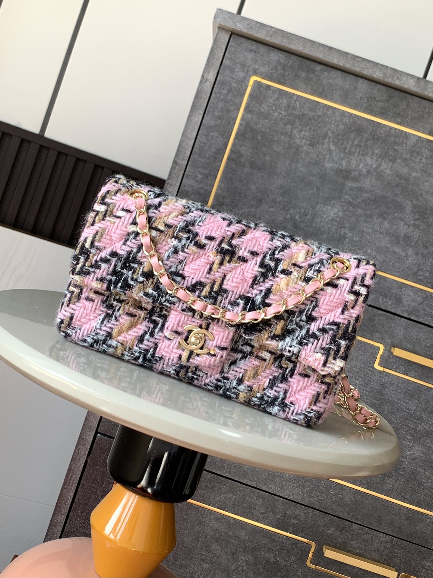 850 Mini OHANEL24 K new pink braided silk woolen CF flap bag pink! I love this little fragrant blue style!