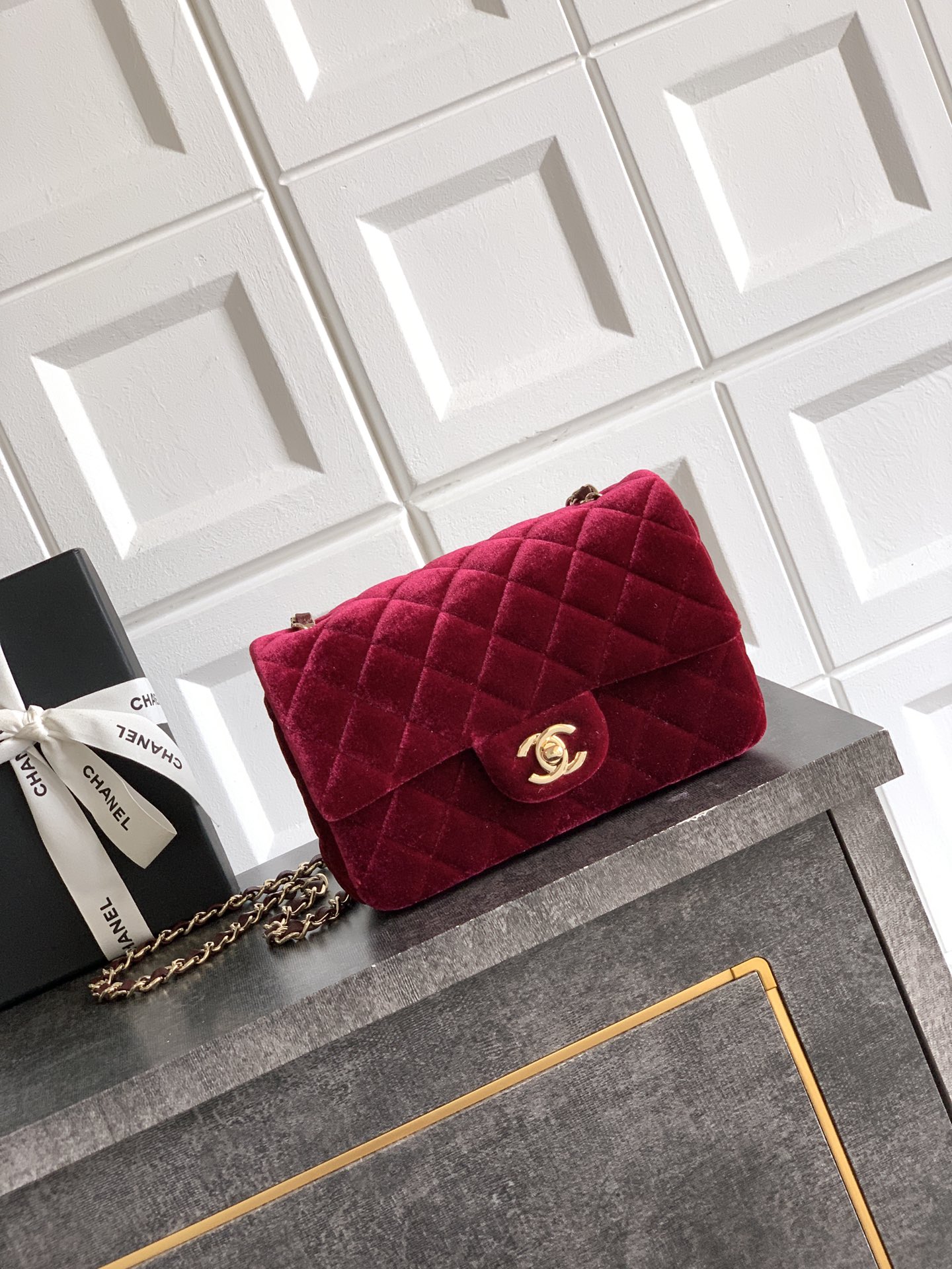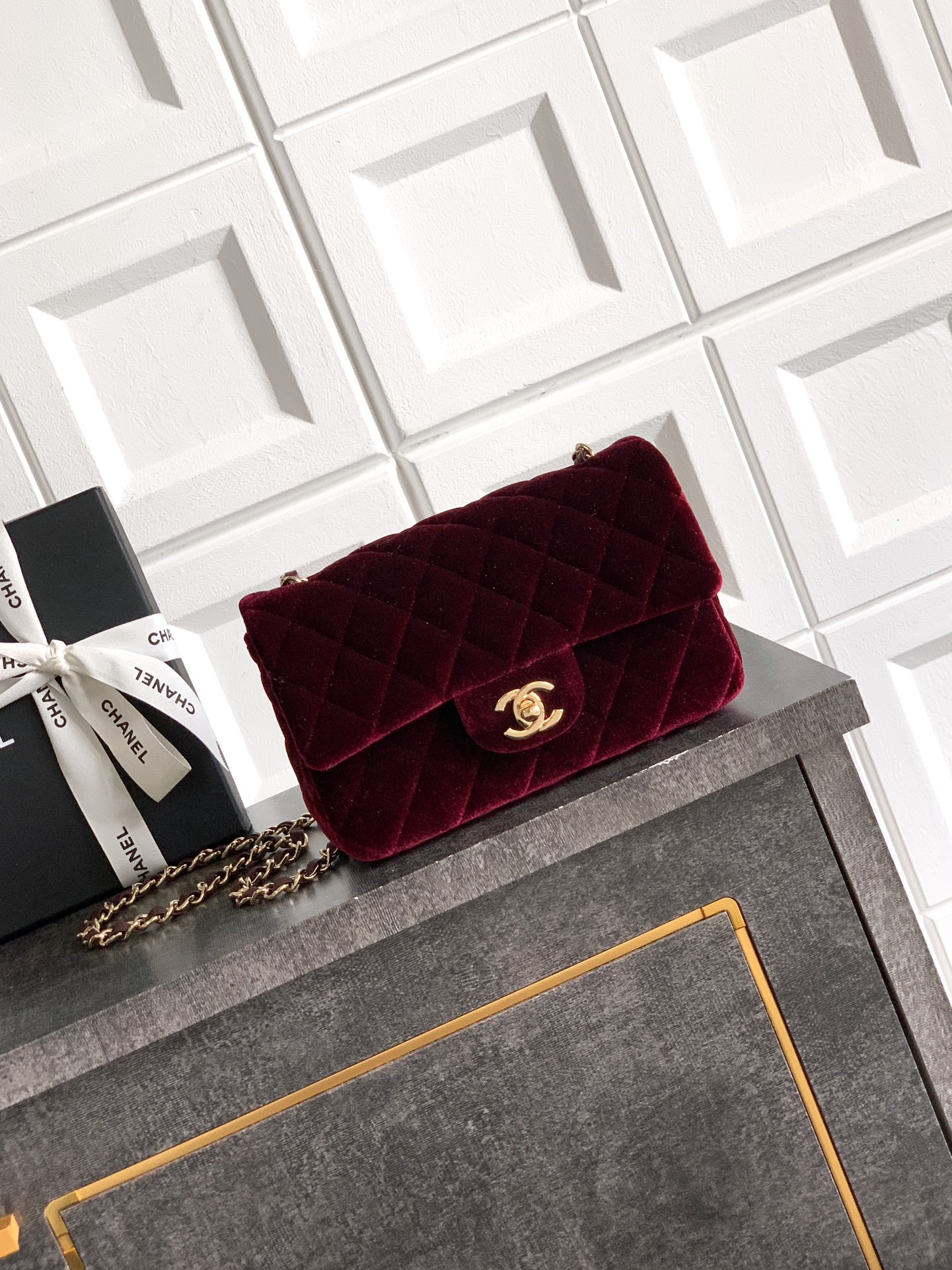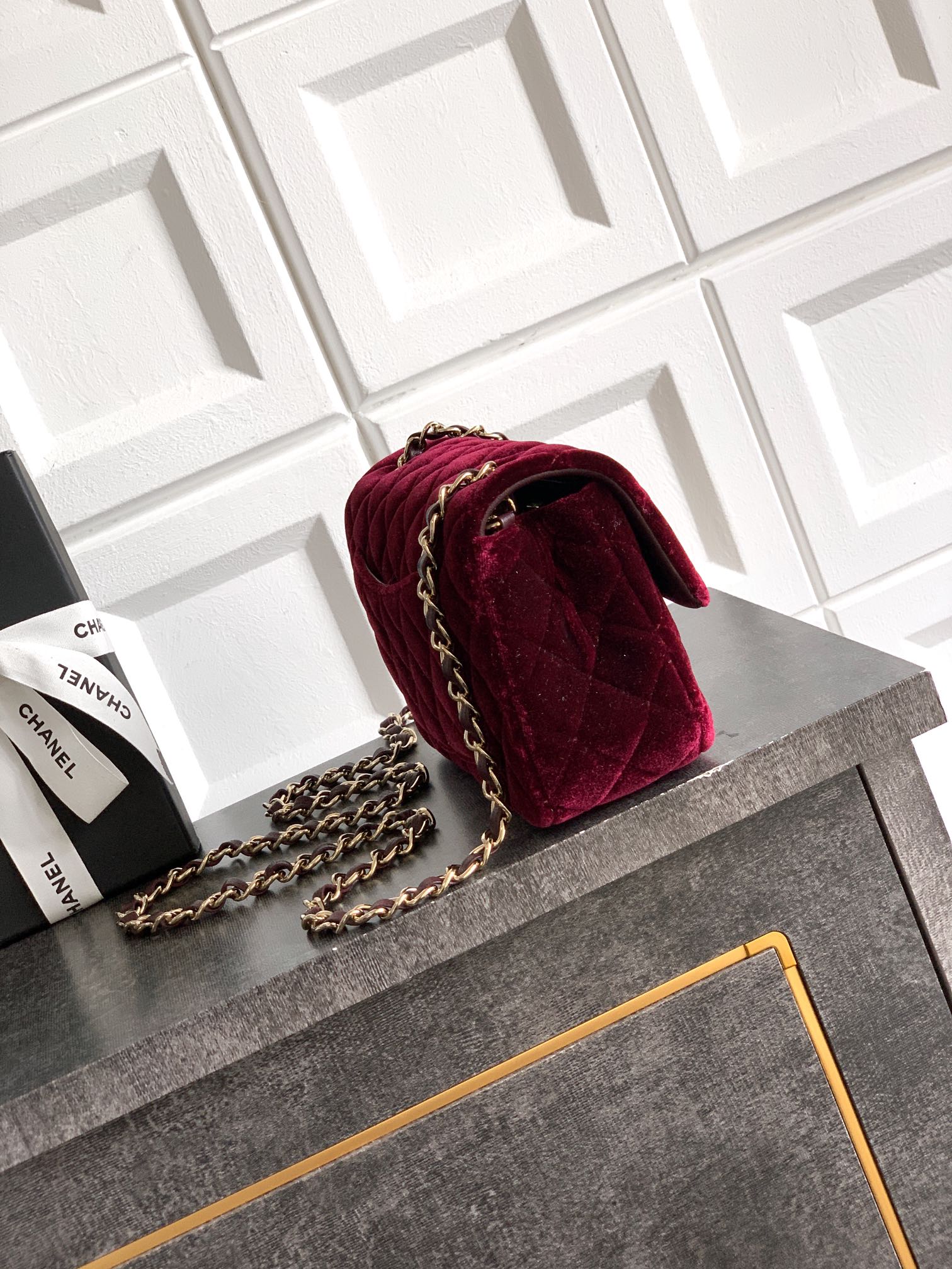 750 Burgundy square OHANEL Chanel velvet bag, rhombus pattern + retro color, so elegant that I ran into Chanel’s new