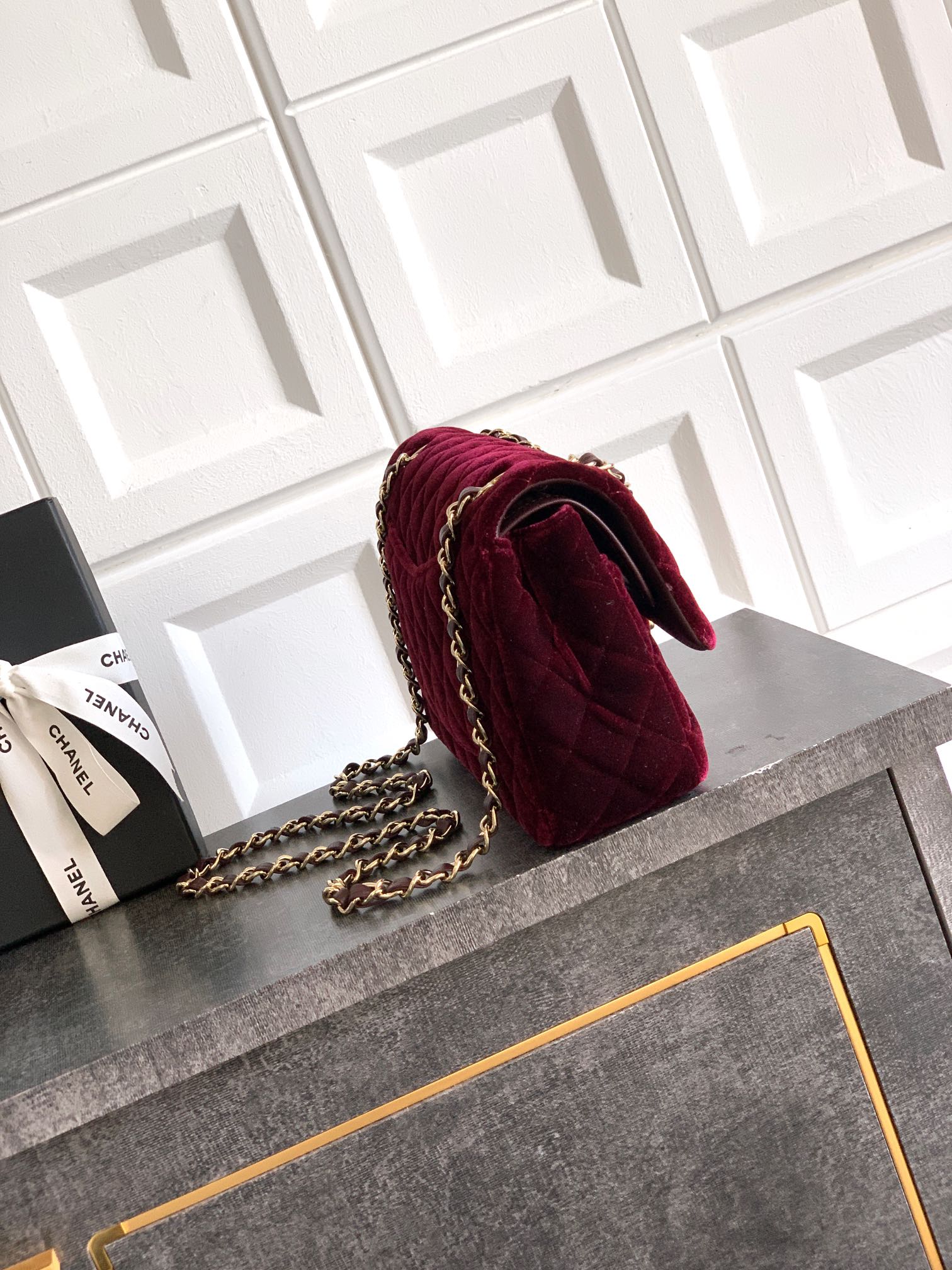 850 Burgundy red 2.55 double hijab OHANEL Chanel velvet bag, rhombus pattern + retro color scheme, so elegant that I