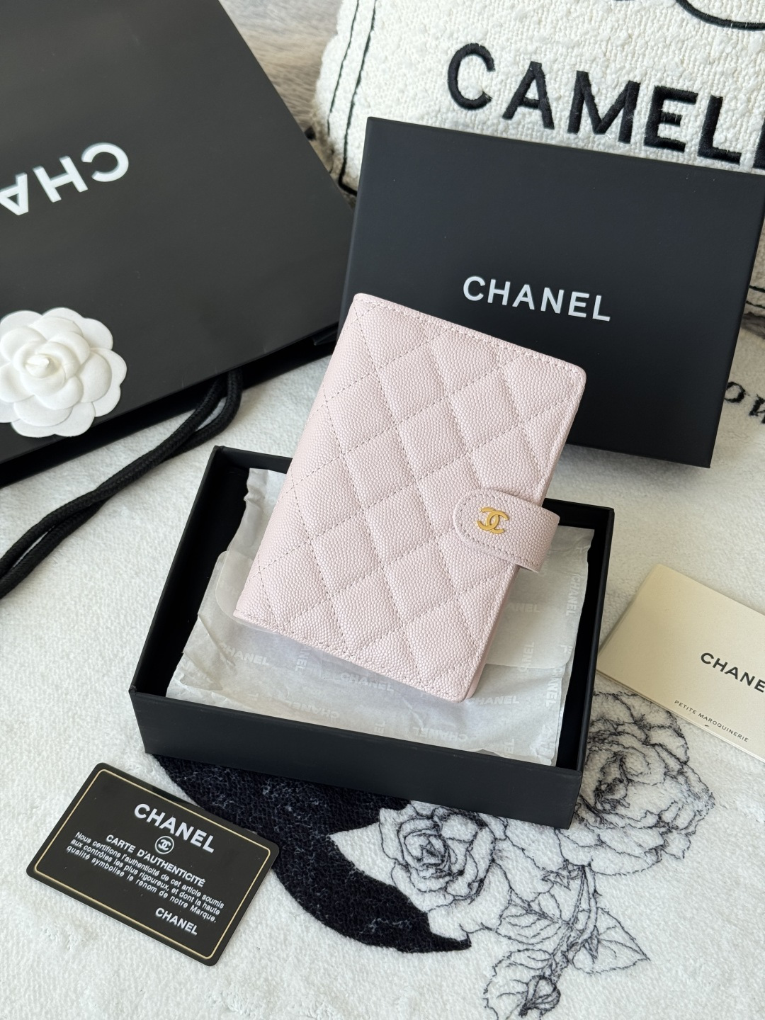 220 new colors are on the shelves. CHANEL multifunctional passport holder made of caviar cowhide, two-in-one wallet, notebook, credit card