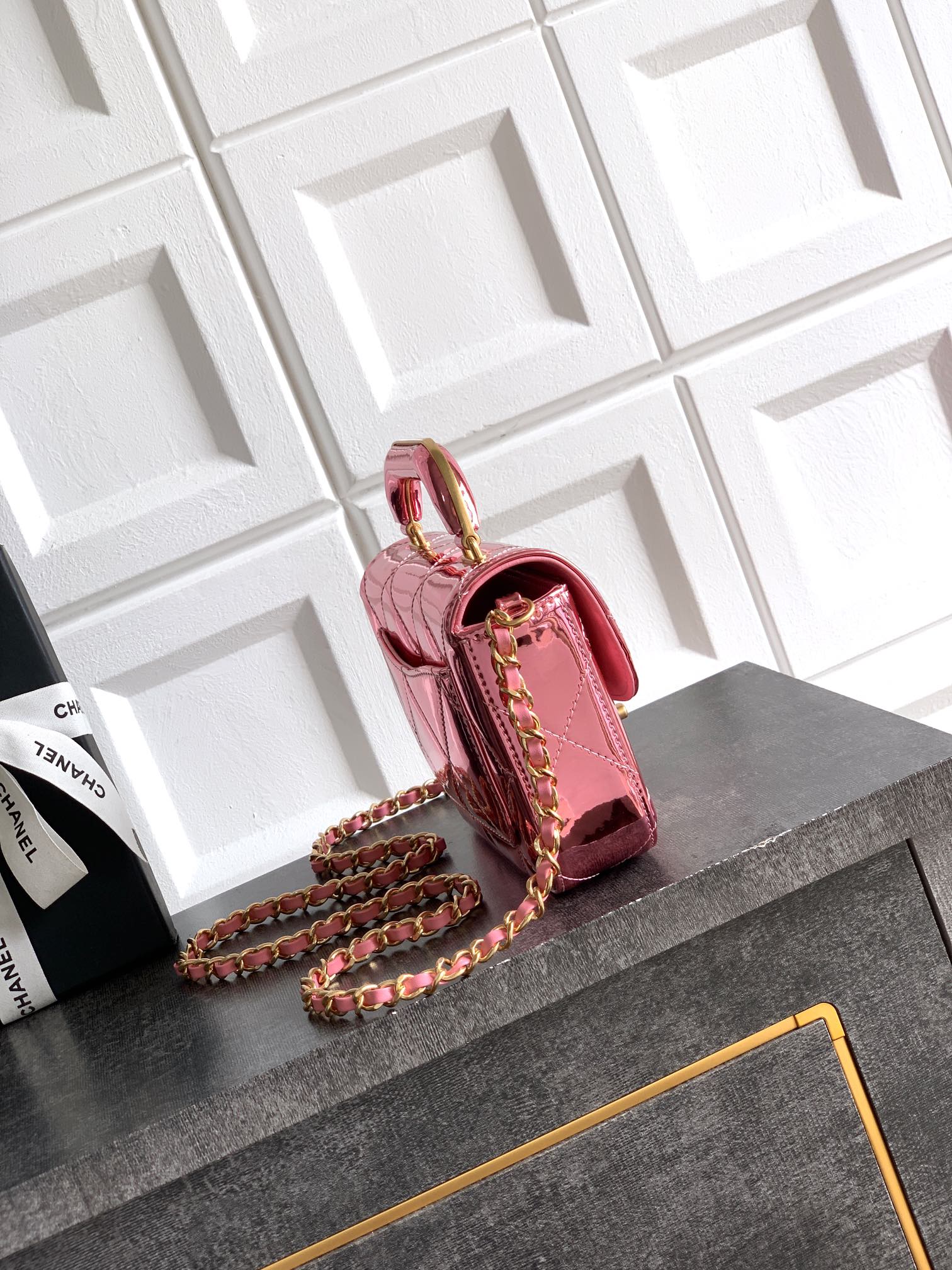 820 “Black” Small size Same style as OHANEL25k show ️Golden patent leather handle cover cover patent leather mirror material is