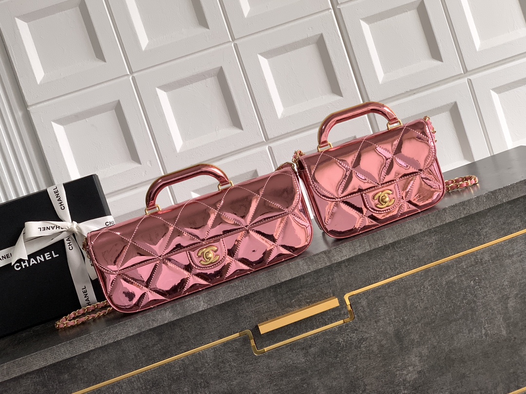 880 ️️”Taro Pink Purple” Large size OHANEL flap bag 25k show same style ️Golden patent leather handle flap bag patent