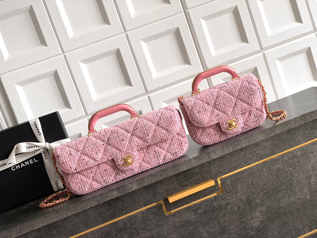 860 Pink “Pure Cotton Needle 🪡 Fabric” OHANEL Flap Bag 25k Show Same Style ️ Handle Flap Bag, the material