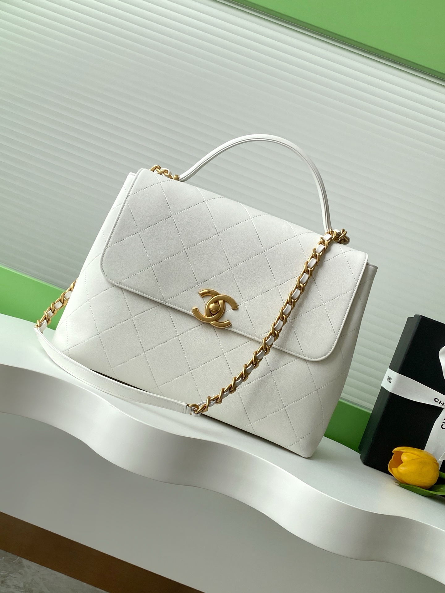 950 25S black gold document flap bag is so handsome! ️Carrying it in hand is full of retro college style~️One