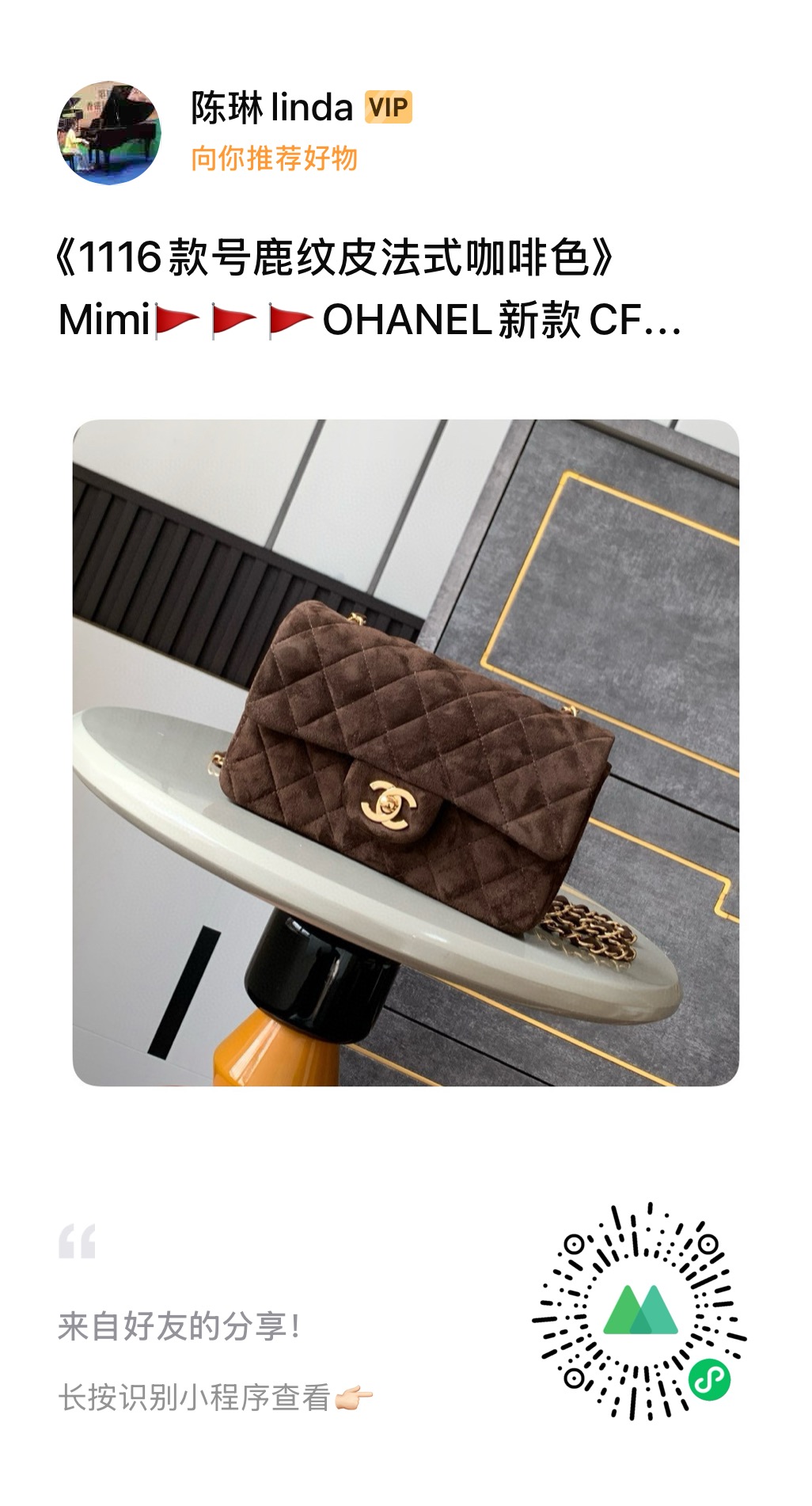 850 suede leather 🤩Double hijab 2.55 classic new “French coffee color” OHANEL new CF hidden style is really beautiful at