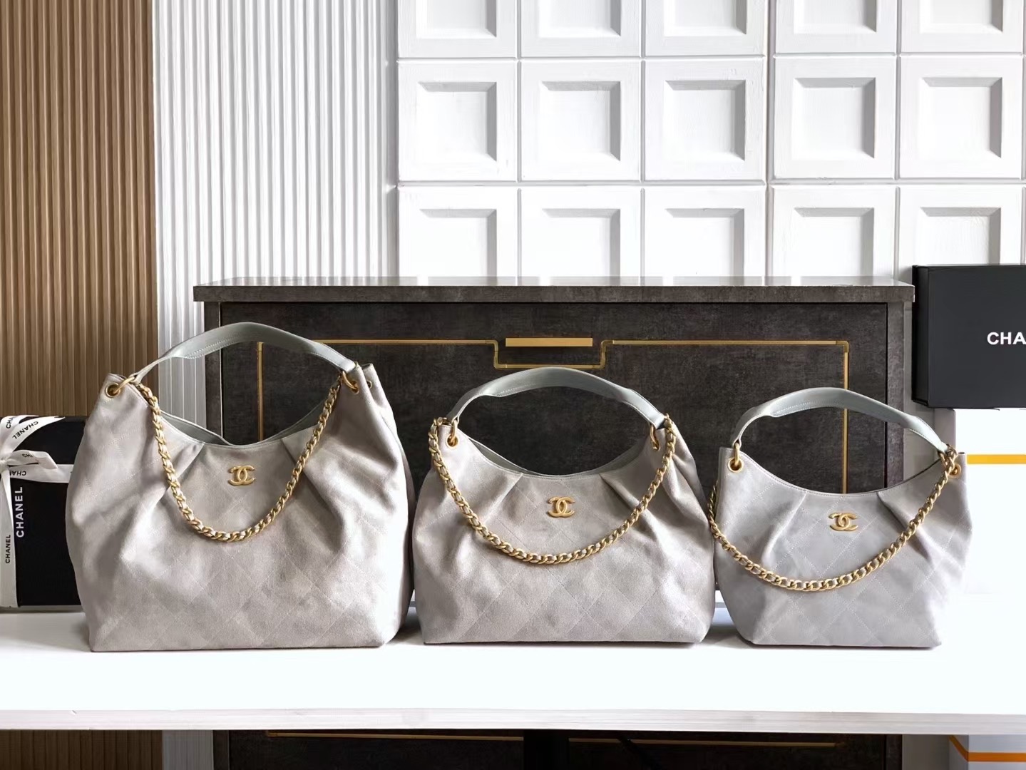 Bag Chanel ️cm! “Light Gray Suede” Big H real picture OHANEL26C early