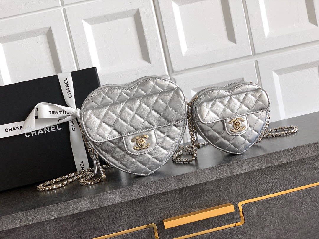 Bag Chanel “Illuminated Silver” large size OHANEL B love bag is recommended! heart chain