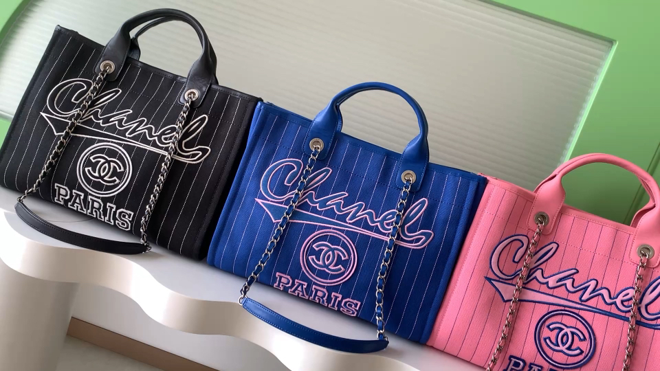 850 Chanel beach bag shopping bag is made of cotton, with a combination of calfskin and metal. It is a