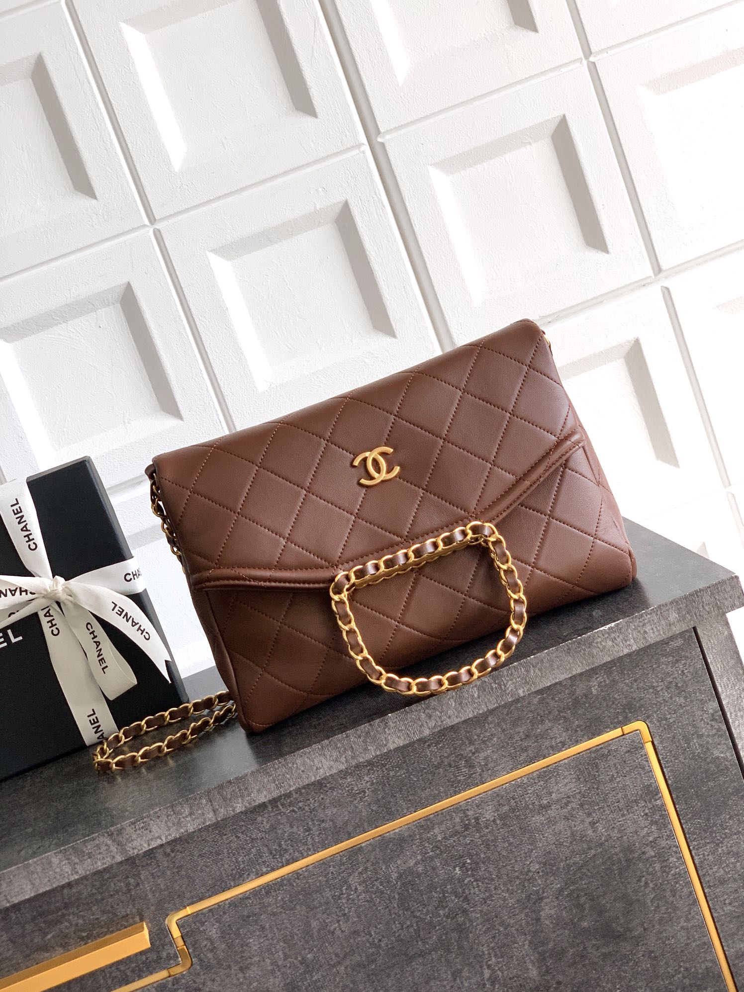 Bag Chanel 5 large leather “Coffee️Dark Brown” feels soft and delicate! “Hebei, Hebei, Hebei” three