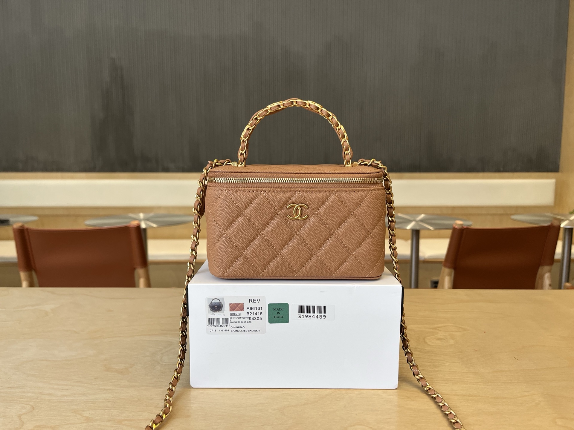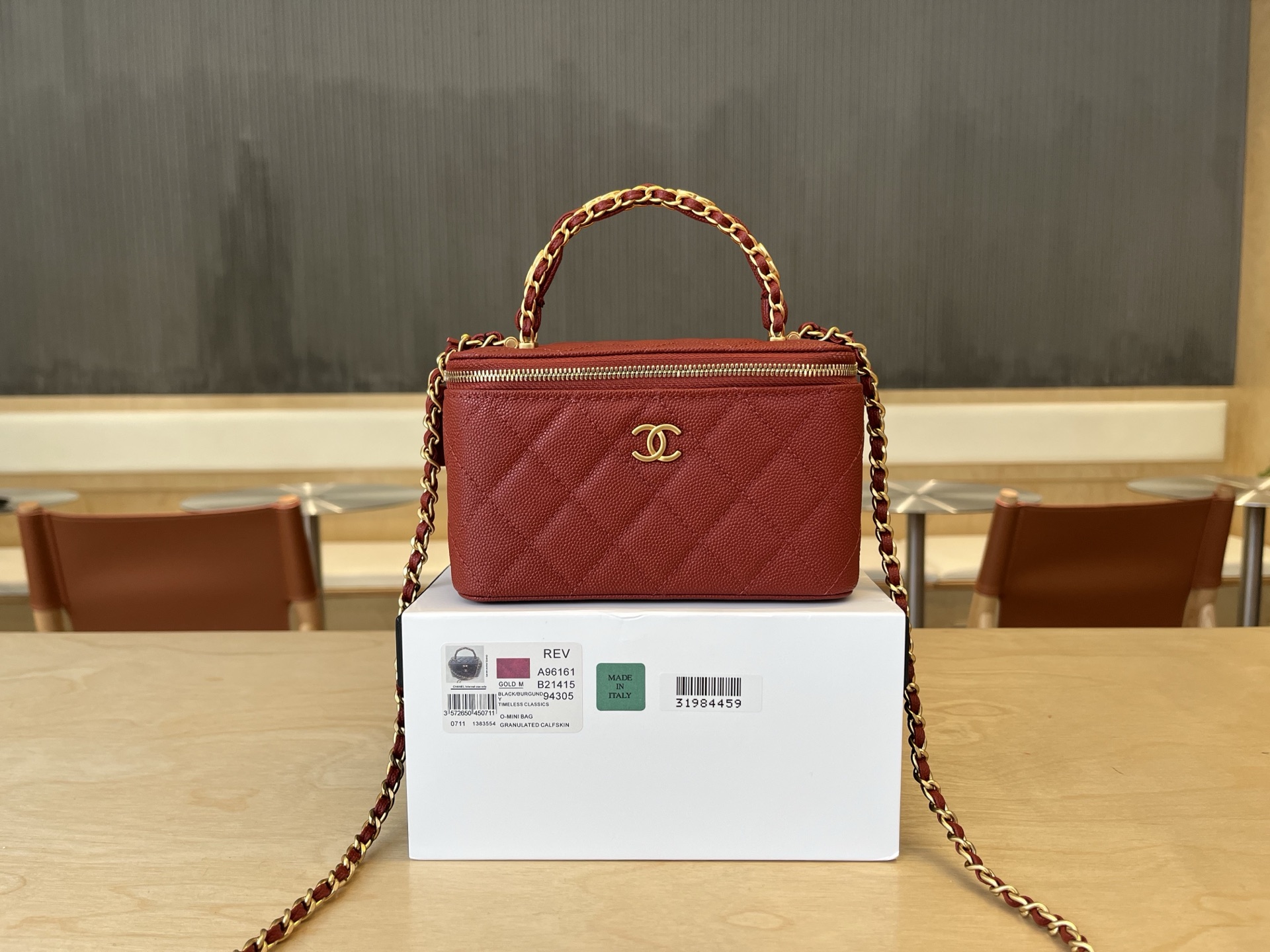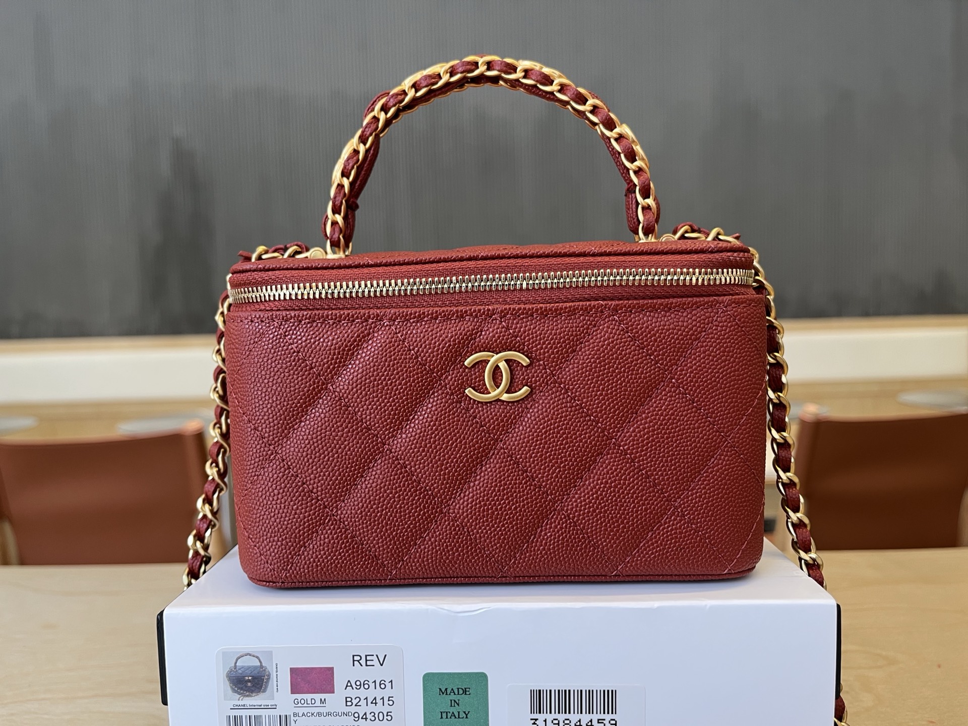 750 A965B double C logo handle cosmetic case. Exquisite handle design is more fashionable. Grained cowhide with metal retro hardware.