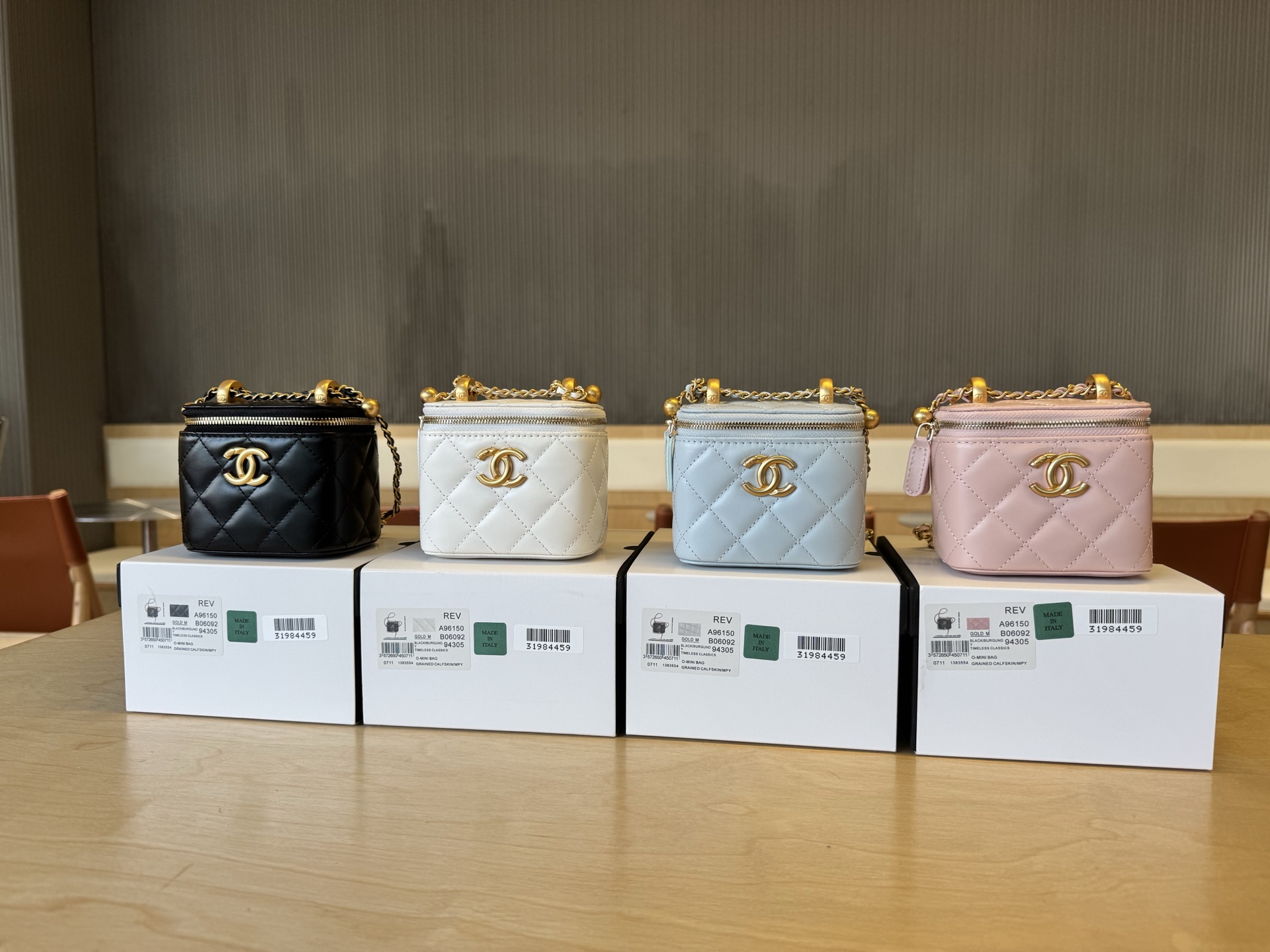 650 A96 Chanel 25 spring and summer new version imported waxed cowhide double gold ball lipstick box bag box storage
