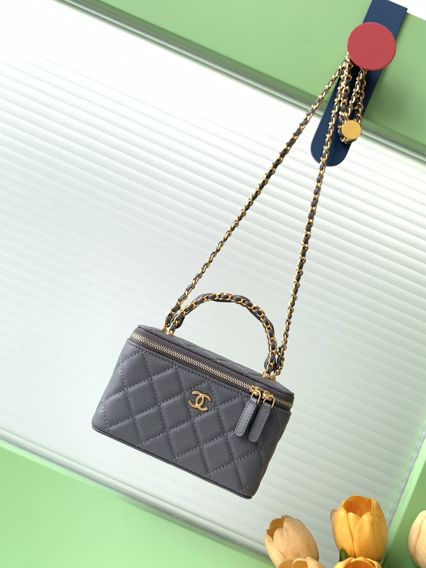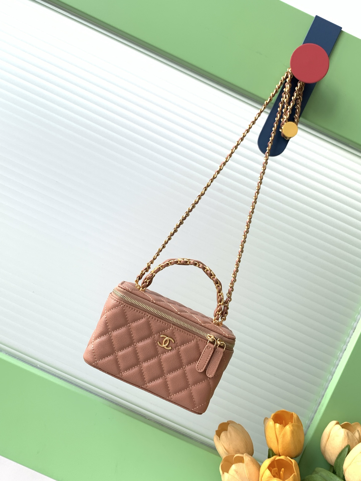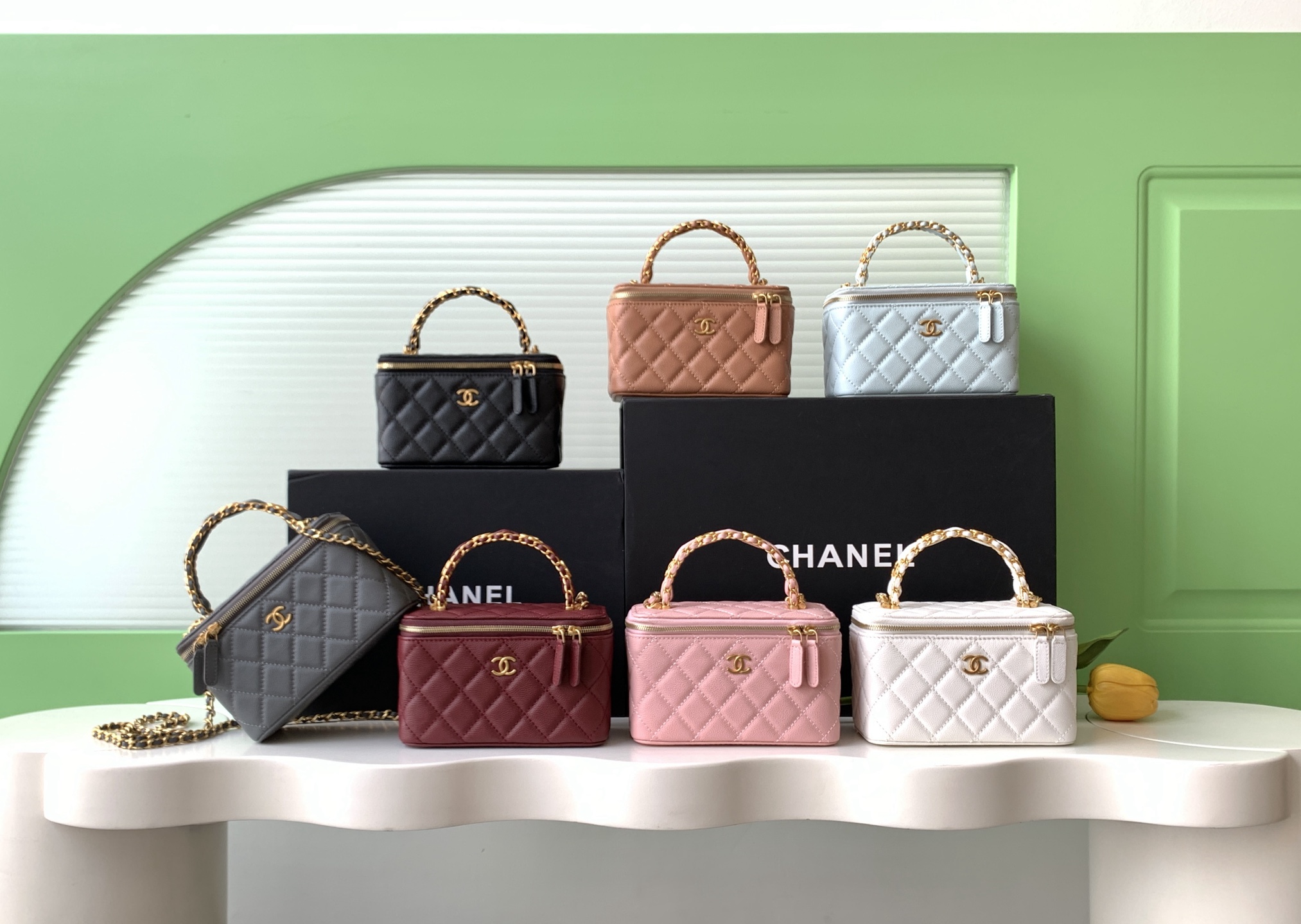 Bag Chanel 7 b double C logo handle cosmetic box, exquisite handle design makes it more fashionable, particles