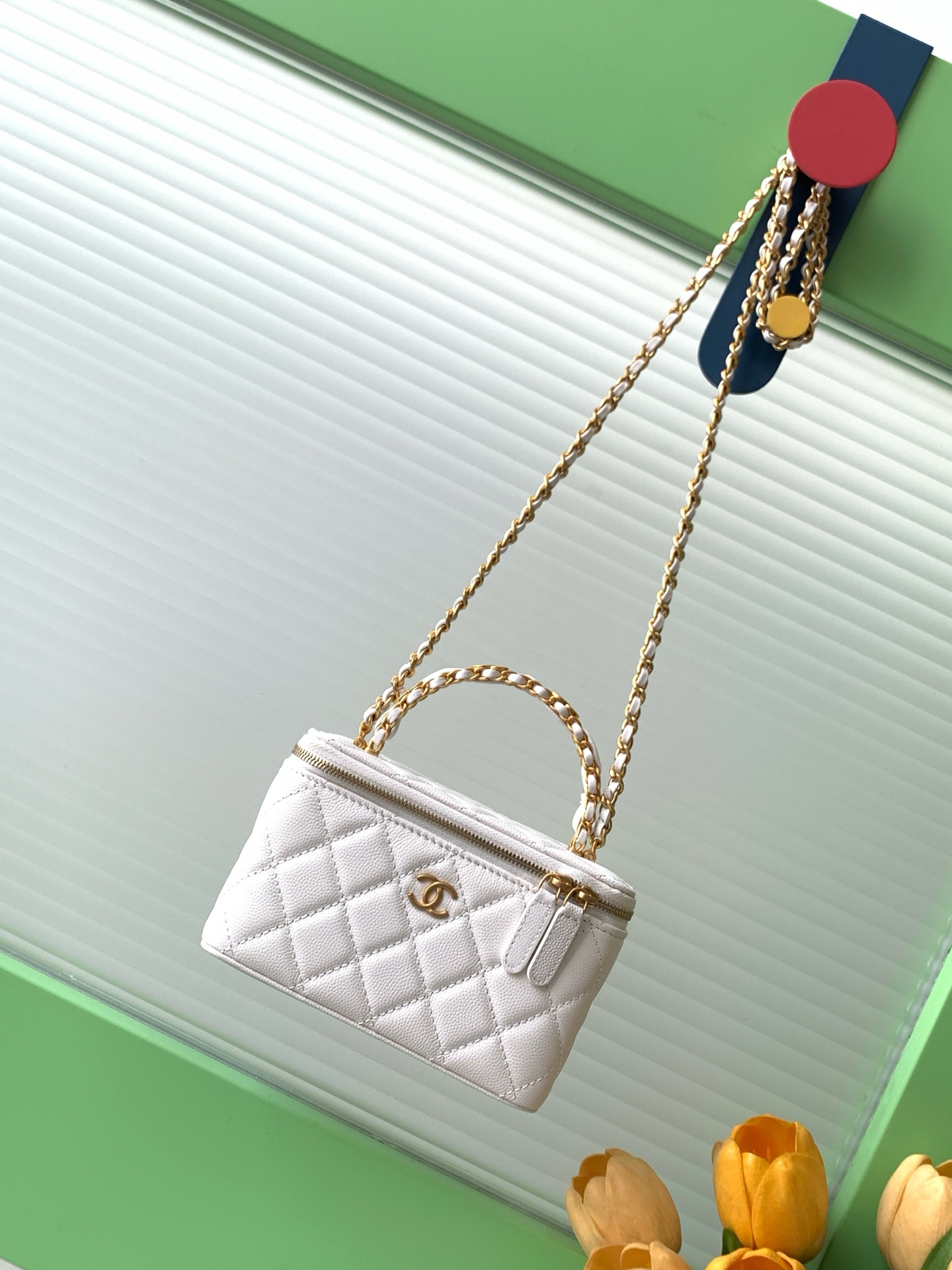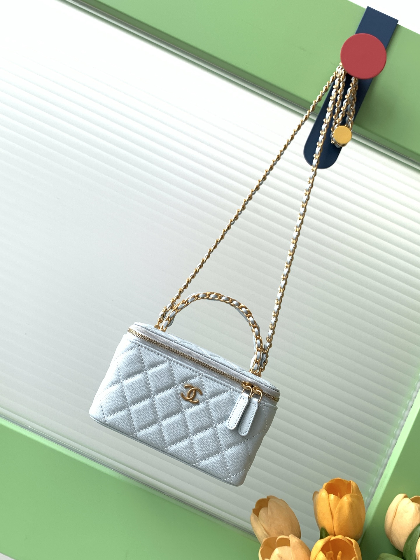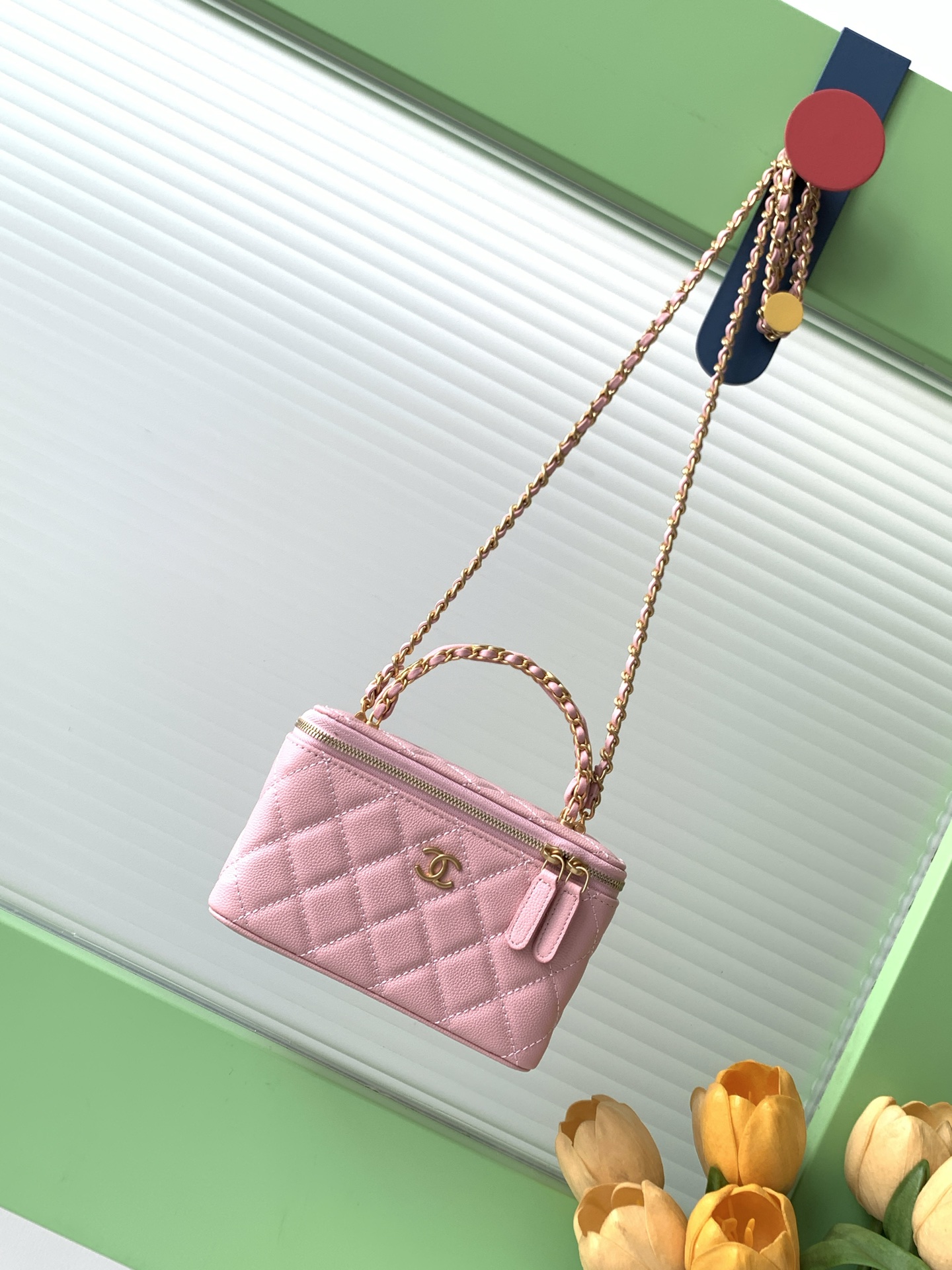 Bag Chanel 7 b double C logo handle cosmetic box, exquisite handle design makes it more fashionable, particles