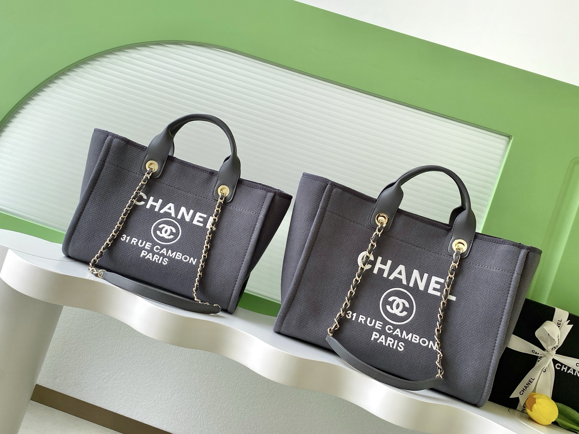Bag Chanel 8 Chanel beach bag shopping bag is made of cotton, with a combination of calfskin and metal.