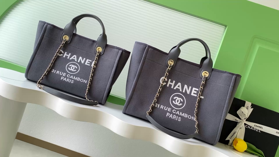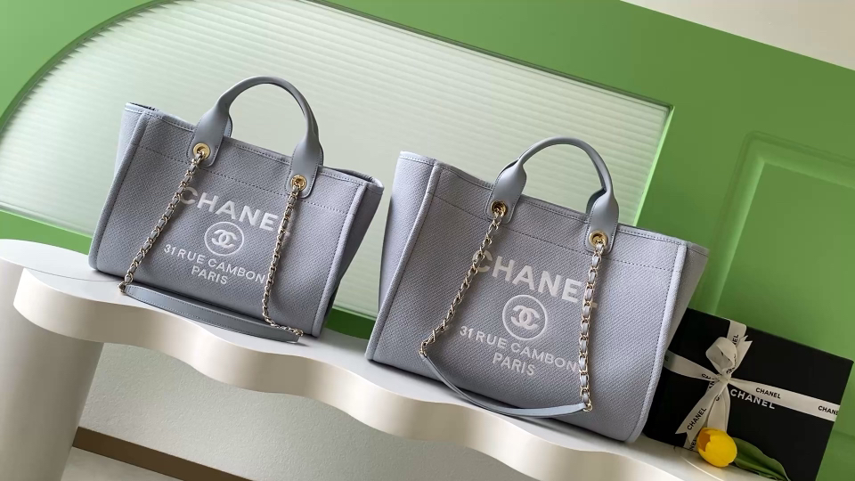 760 Chanel beach bag shopping bag is made of cotton, with a combination of calfskin and metal. It is a