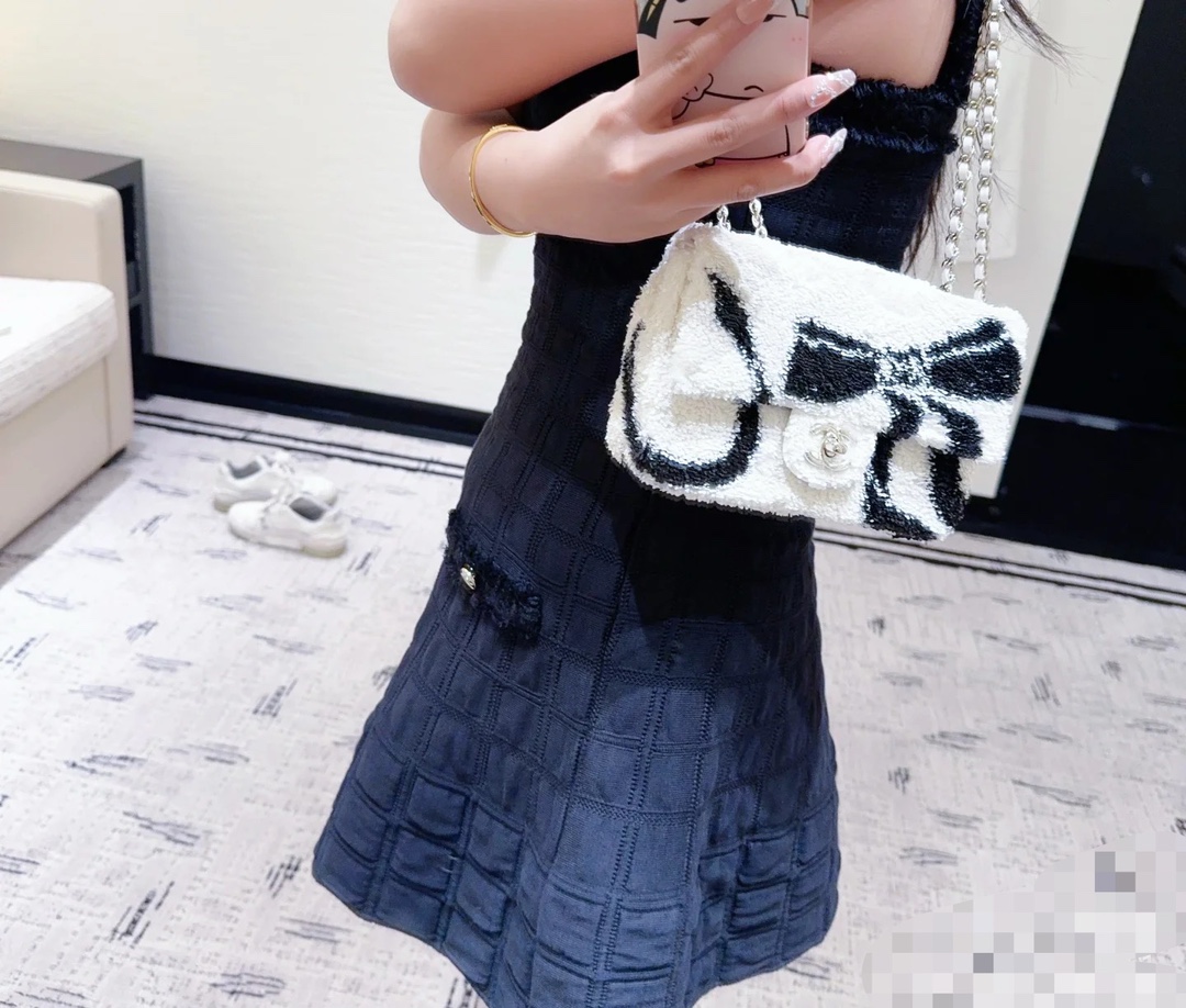 Bag Chanel Model upper body picture “White with Black” is exclusively shipped “Butterfly 🦋 Sequins” OHANEL K Heavy