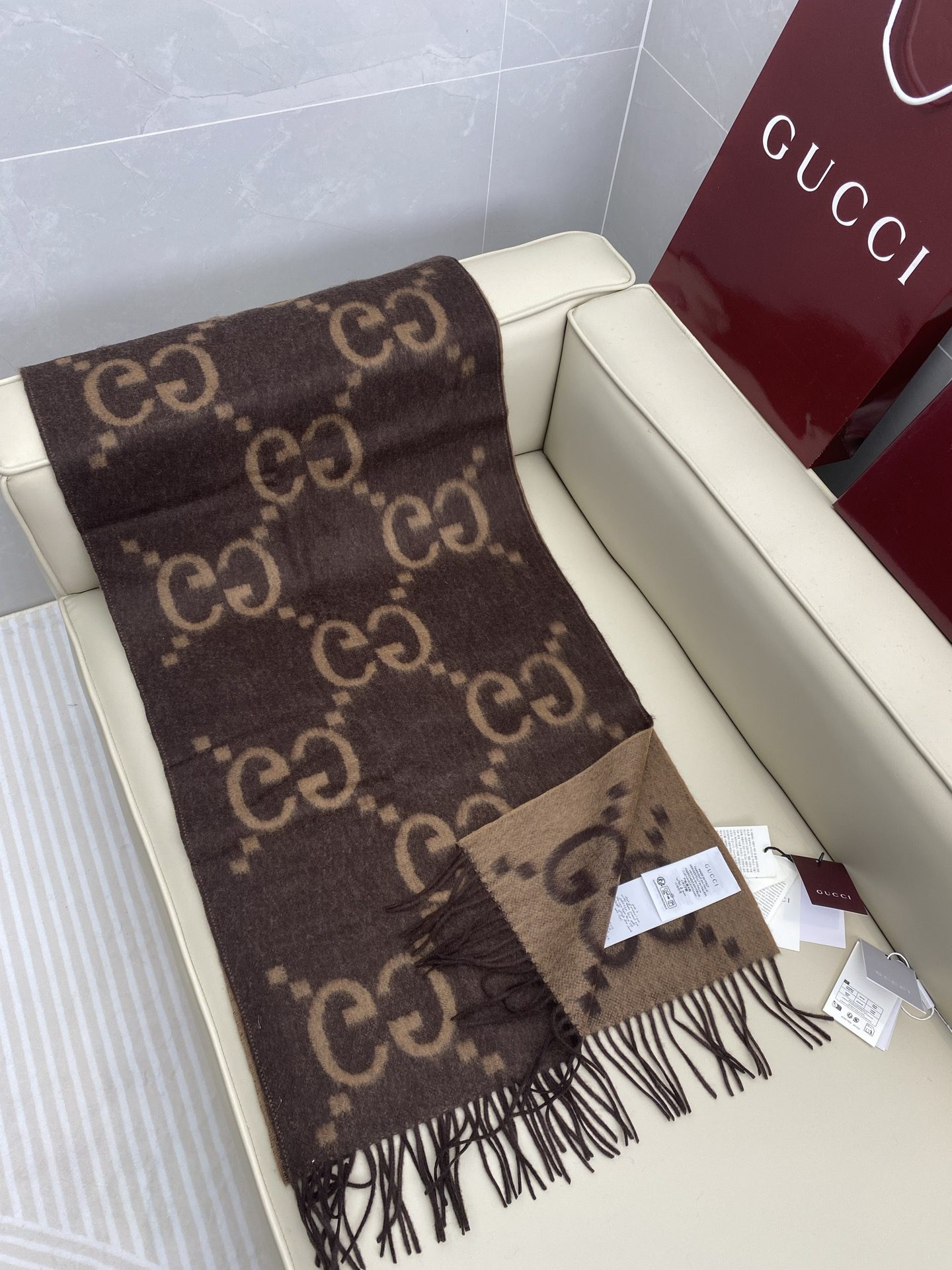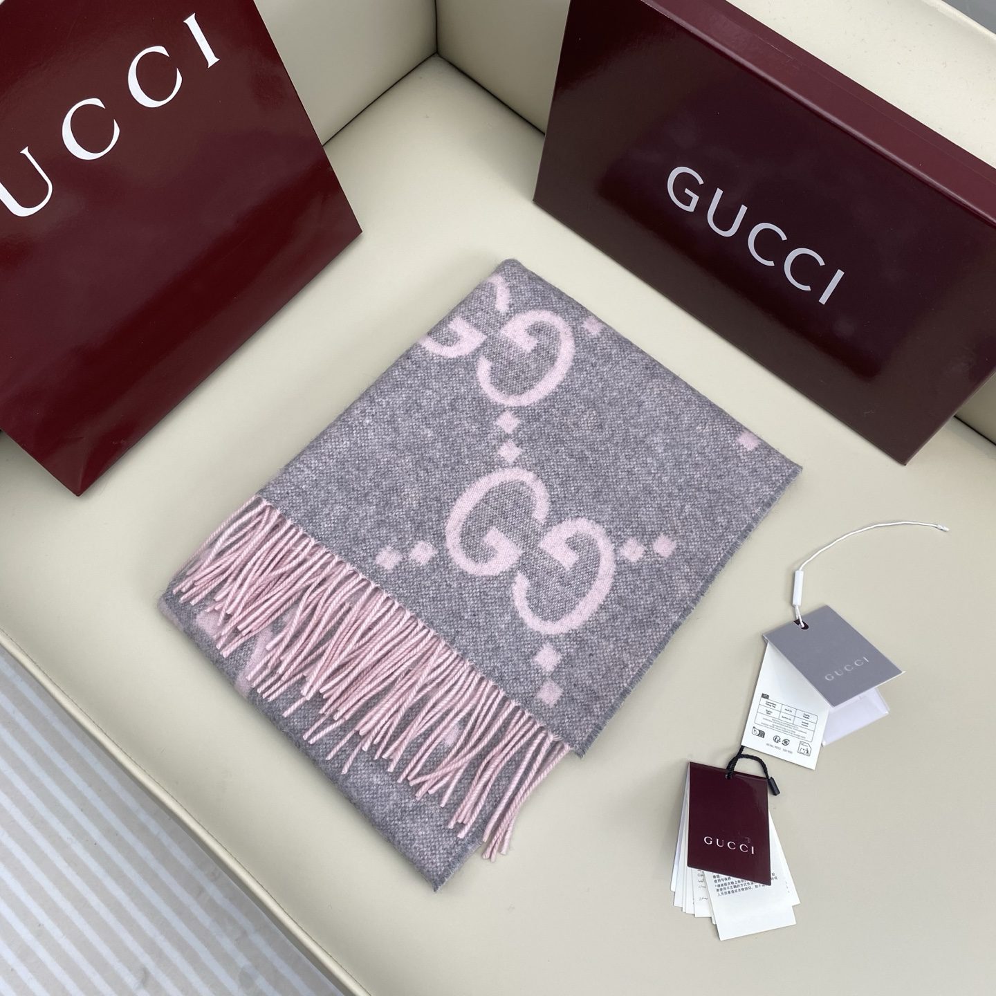 𝐆𝐮𝐜𝐜𝐢 New Big G double-sided cashmere scarf Blue Size: 45200cm 0% cashmere G family’s rare pure cashmere product! Extra large