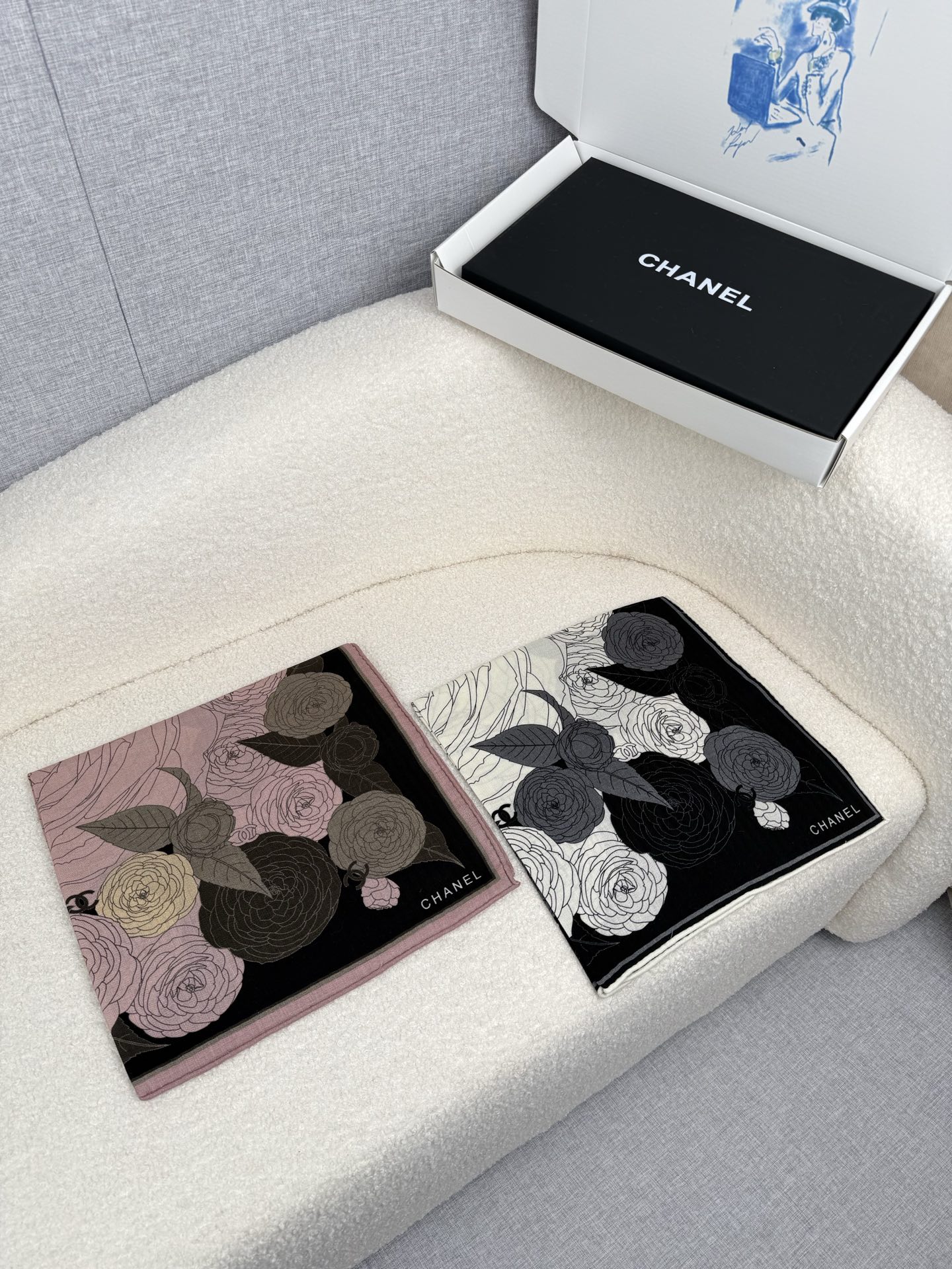 Scarf🧣Top Version🧣 .00. C home. [Black Pink] Chanel Super Classic Camellia