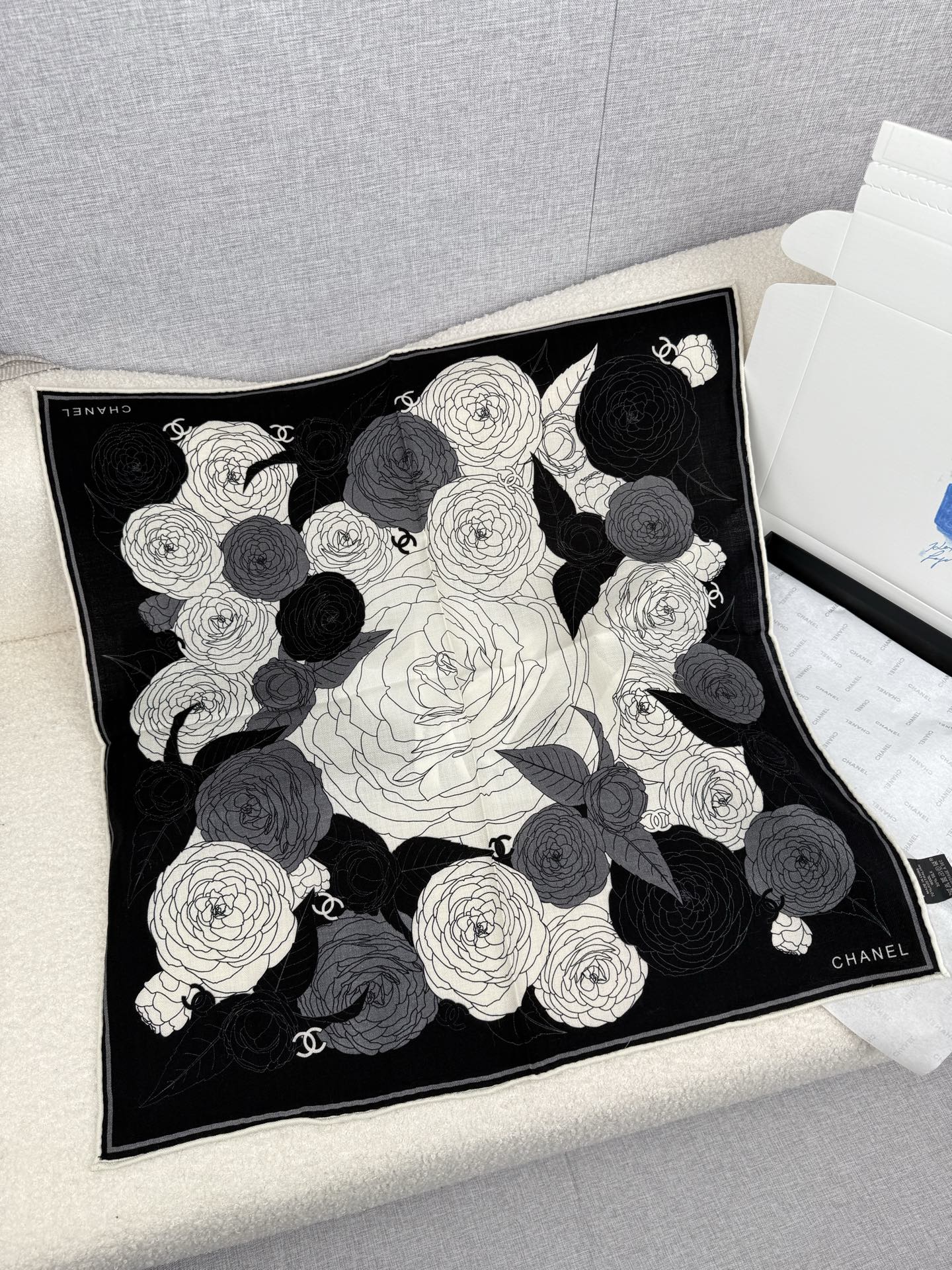 Scarf🧣Top Version🧣 .00. C home. [Black Gray] Chanel Super Classic Camellia