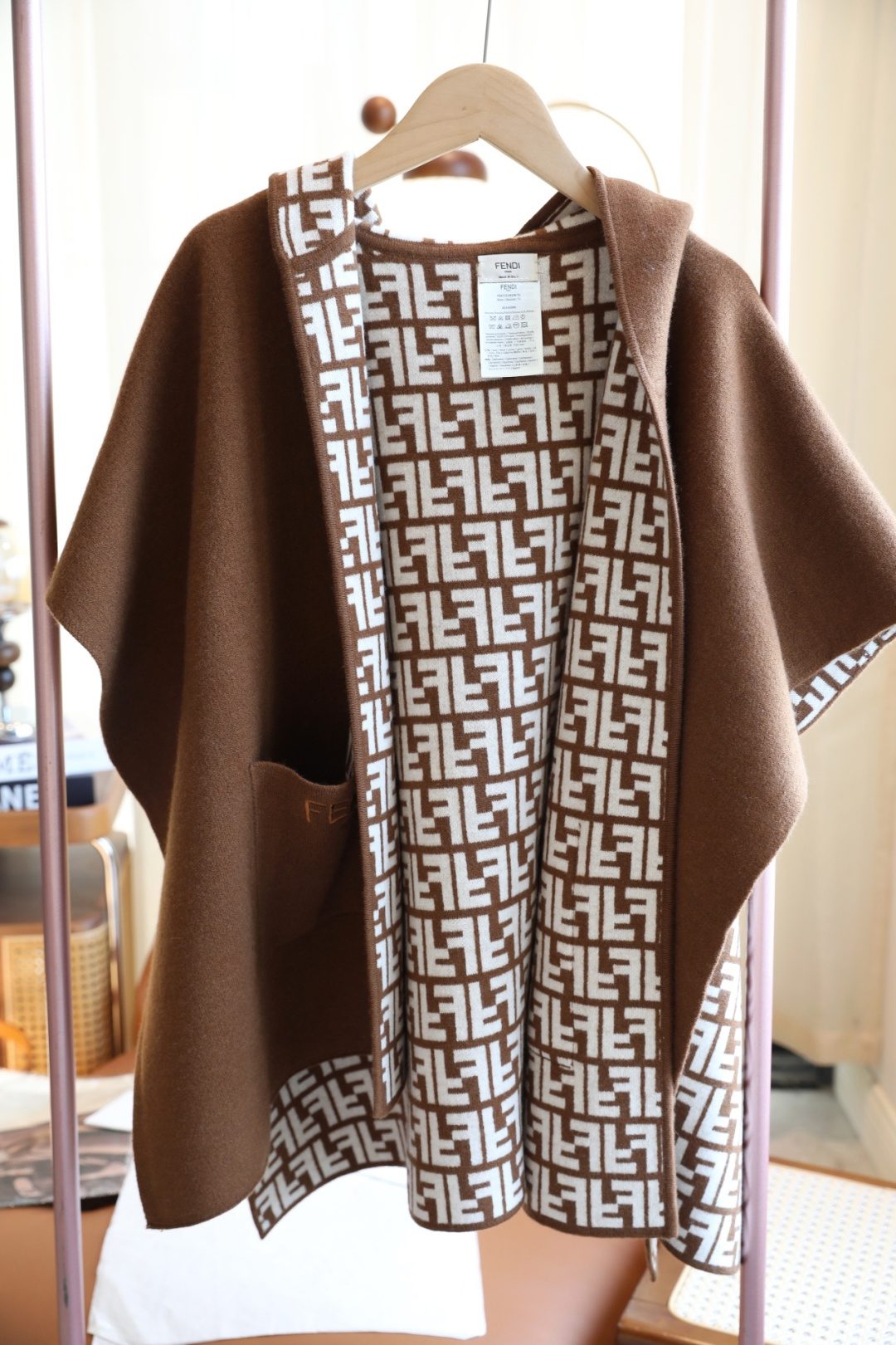 🧣Top cashmere version🧣 p4FENDl double-sided wool and cashmere blended knitted jacket cape. It feels soft, comfortable and delicate. It is