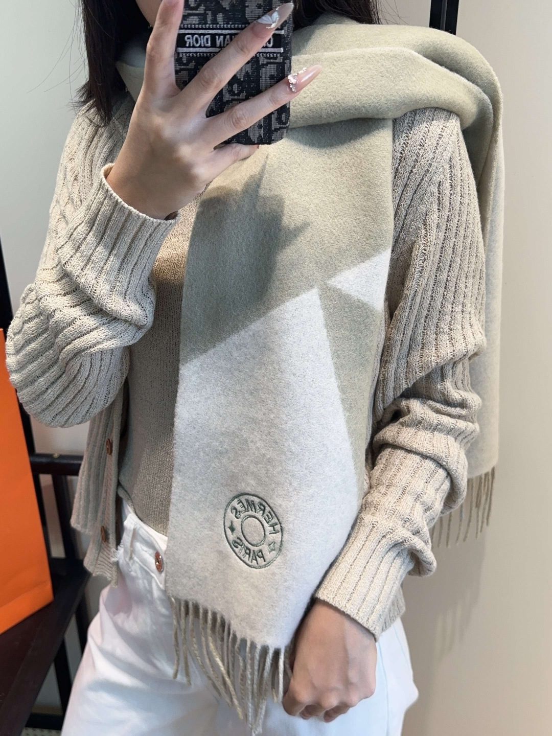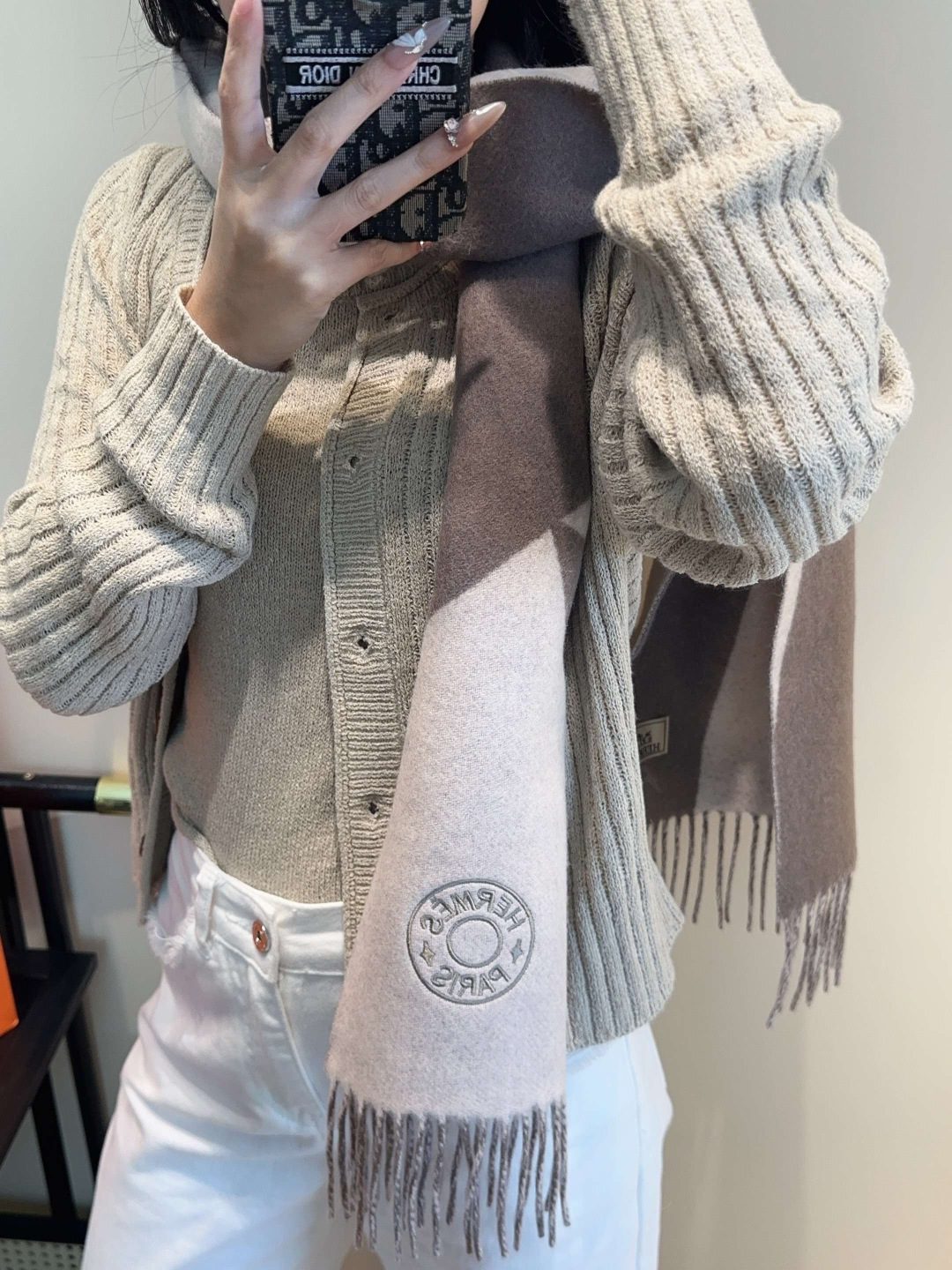 🧣Top cashmere version🧣 2025 Hermes · Hermès, rare and gentle color matching, low-key yet elegant️]Highly recommended️Bilateral color matching, one scarf