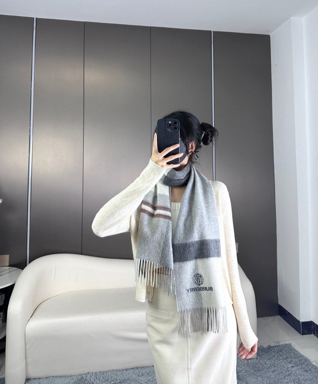 🧣Higher version and thicker🧣P The latest style from Burberry counters, hot coming! Top-notch double-layer yarn-dyed craftsmanship, 0% top-grade silk cashmere