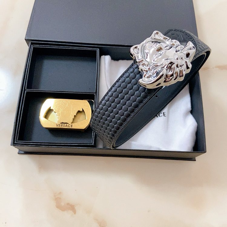 Belt Versace double buckle, high-end original single belt, available at European counters, double-sided Italian imported first-layer cowhide 3.