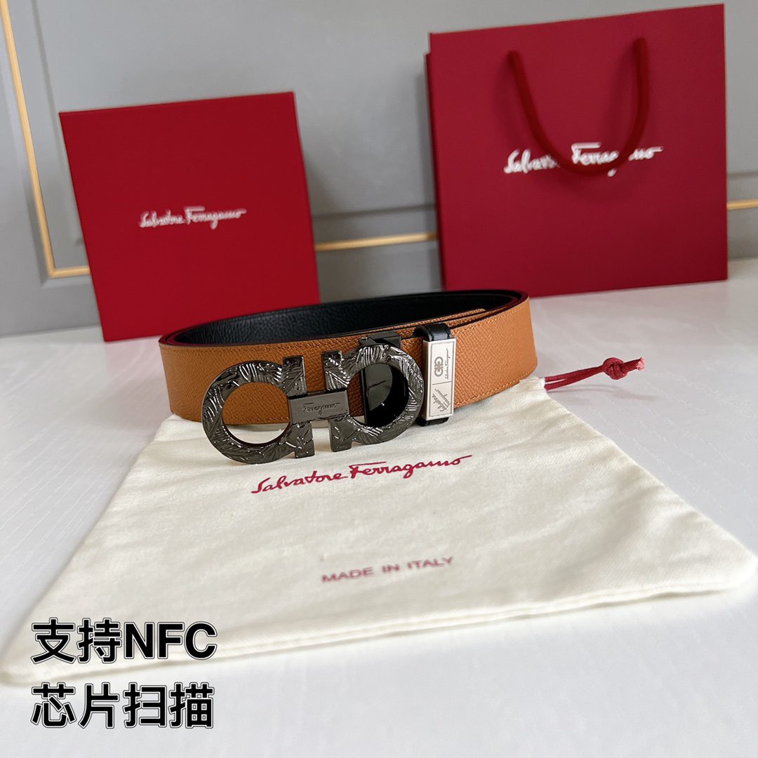 Belt Ferragamo belt supports NFC and chip scanning! Steel buckle original version 3