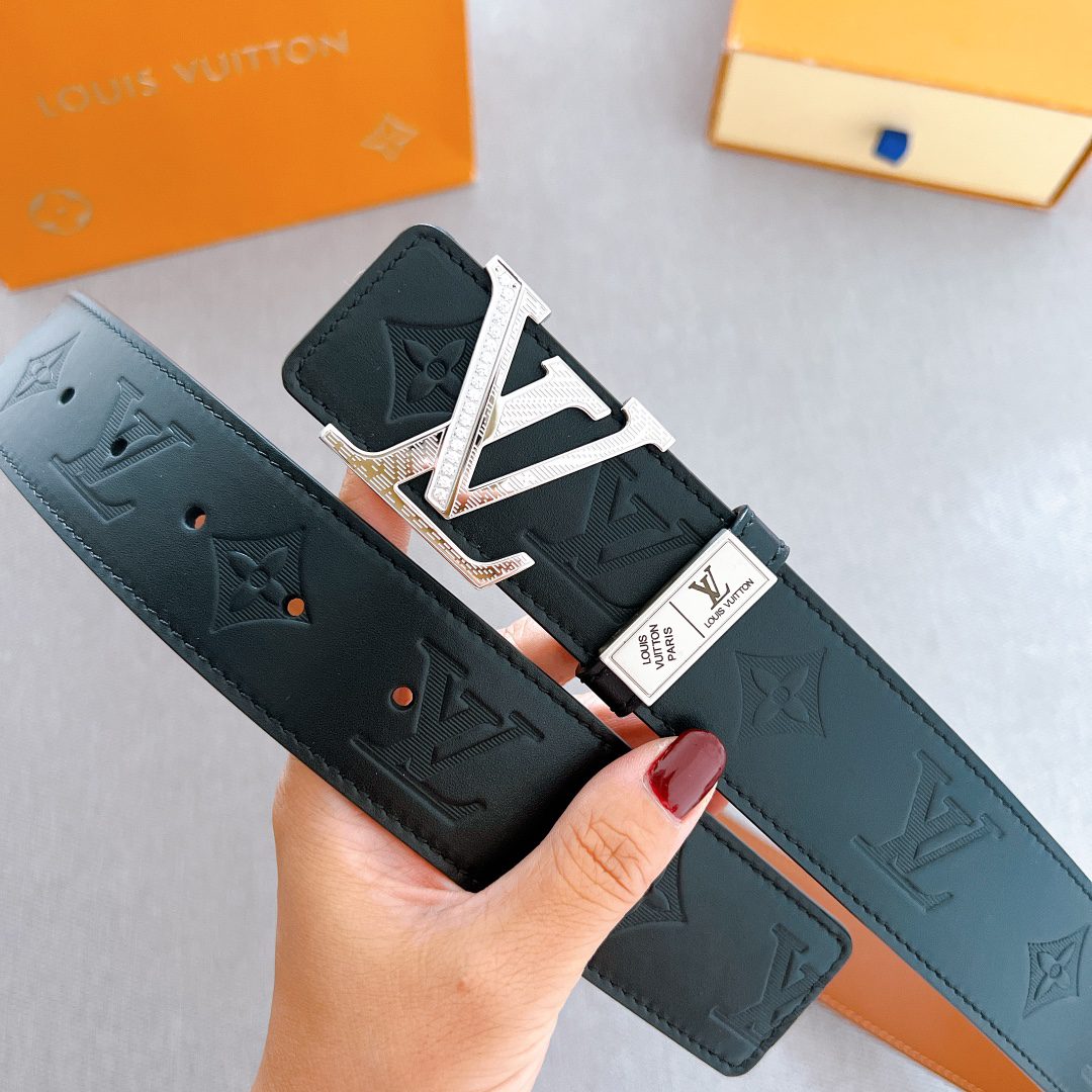 Belt LV Initiales 40mm shark pattern new English double layer diamond steel buckle counter waist