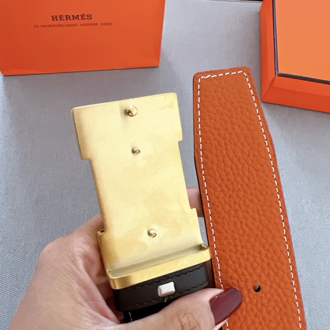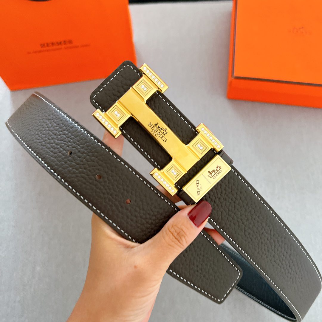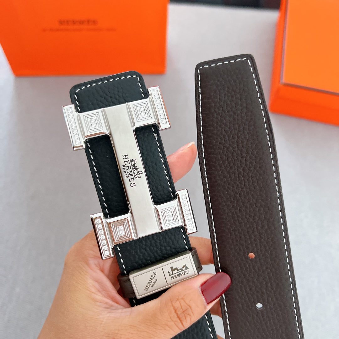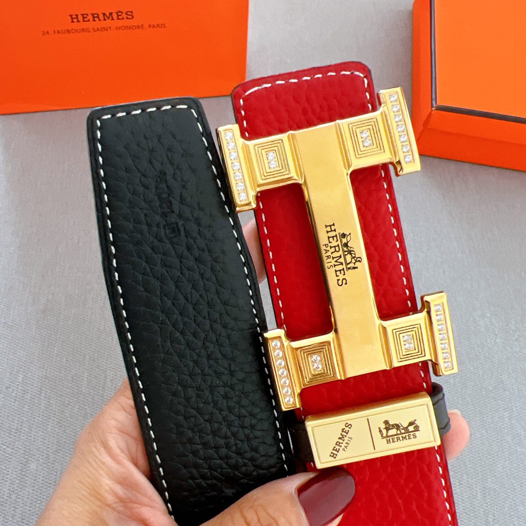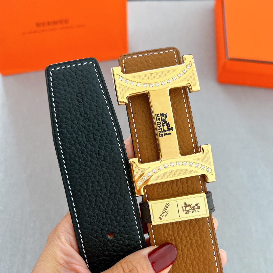Belt Hermes diamond-encrusted steel buckle, handmade cm double-sided original leather, exclusive for Hermes