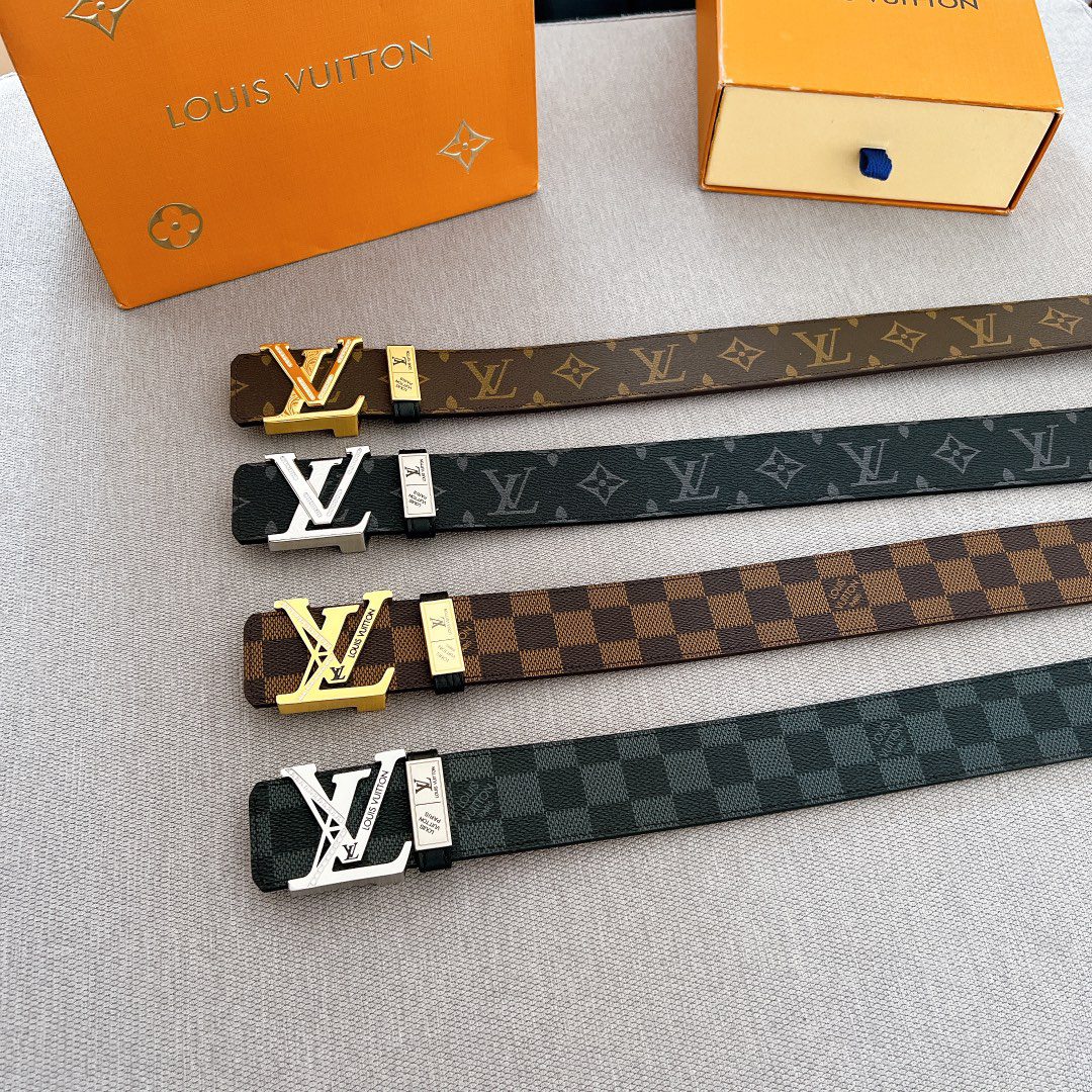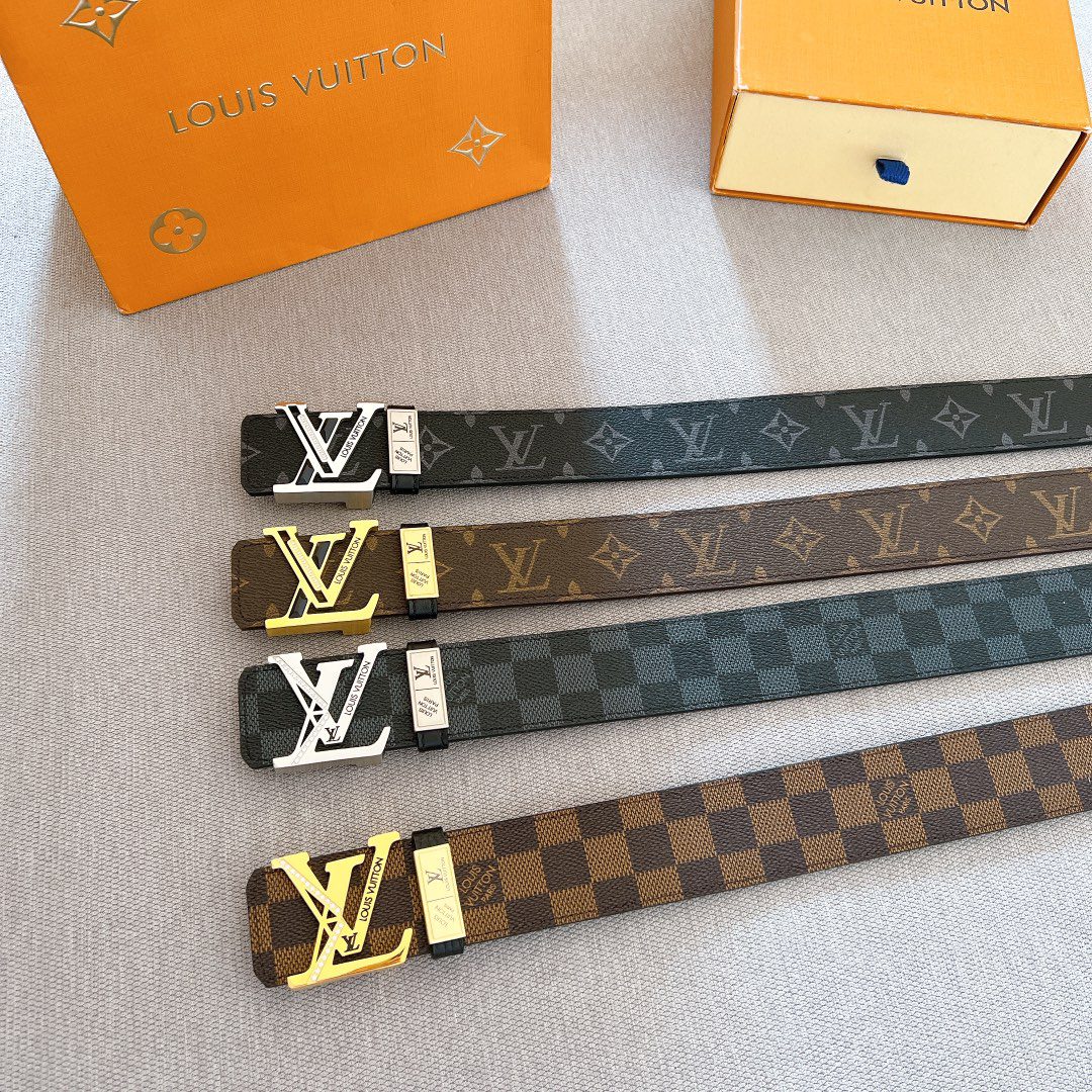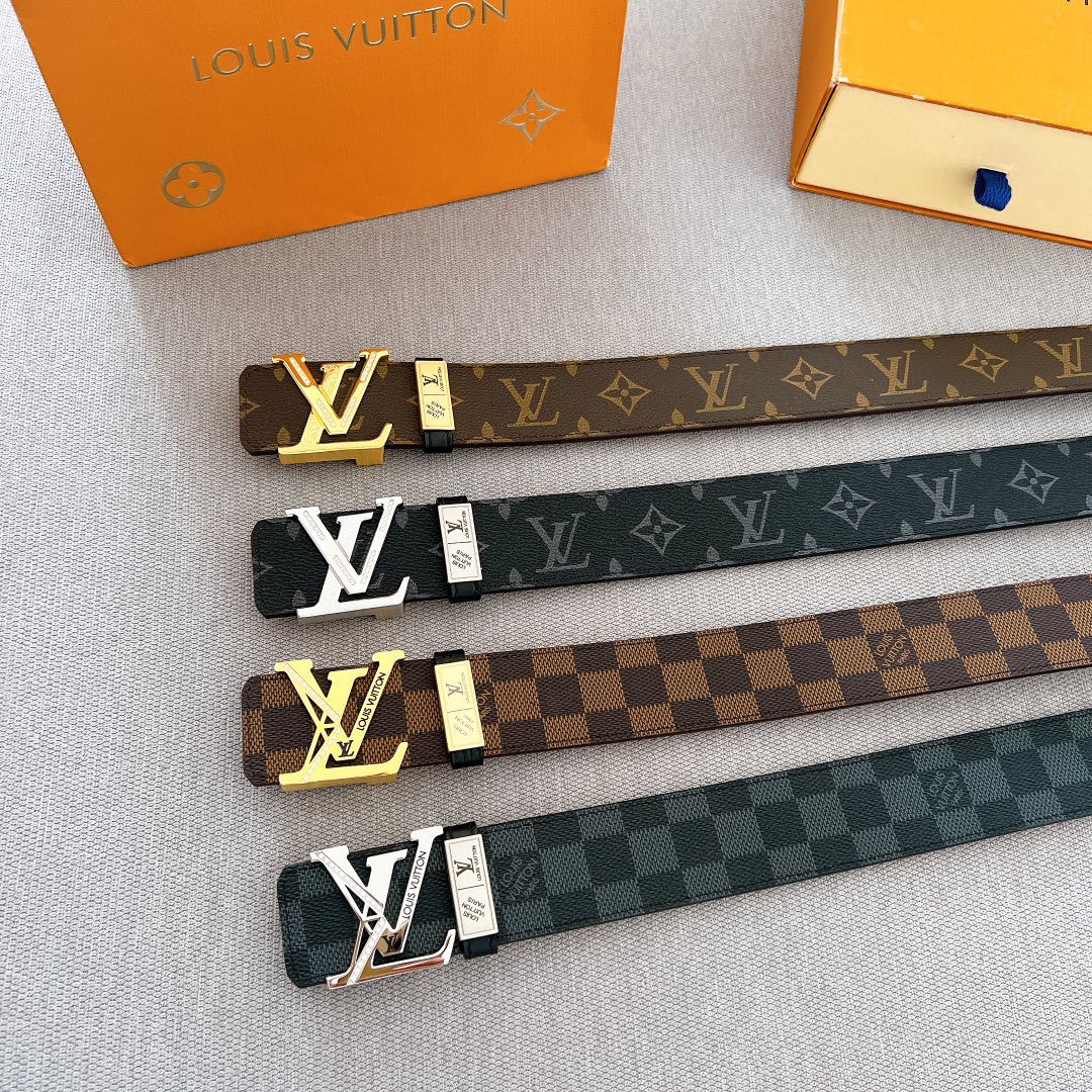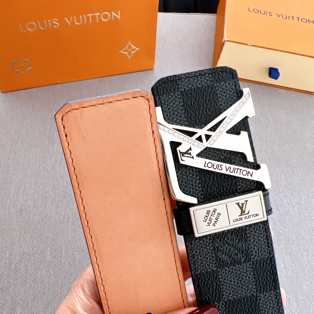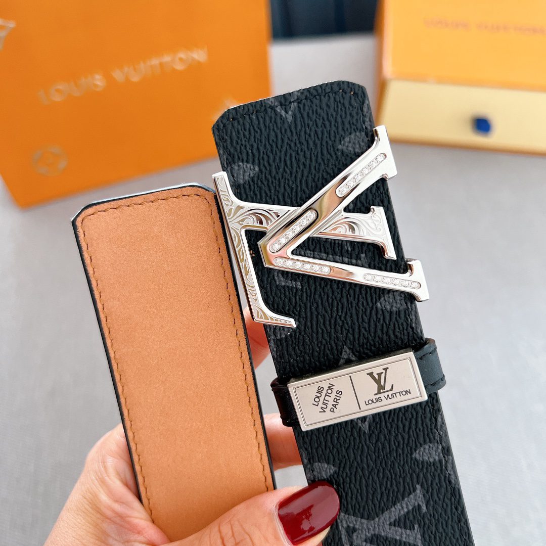 LV Initiales 40mm new English double-layer diamond-encrusted steel buckle counter belt printed double-sided style interprets two classics: Monogram shows the