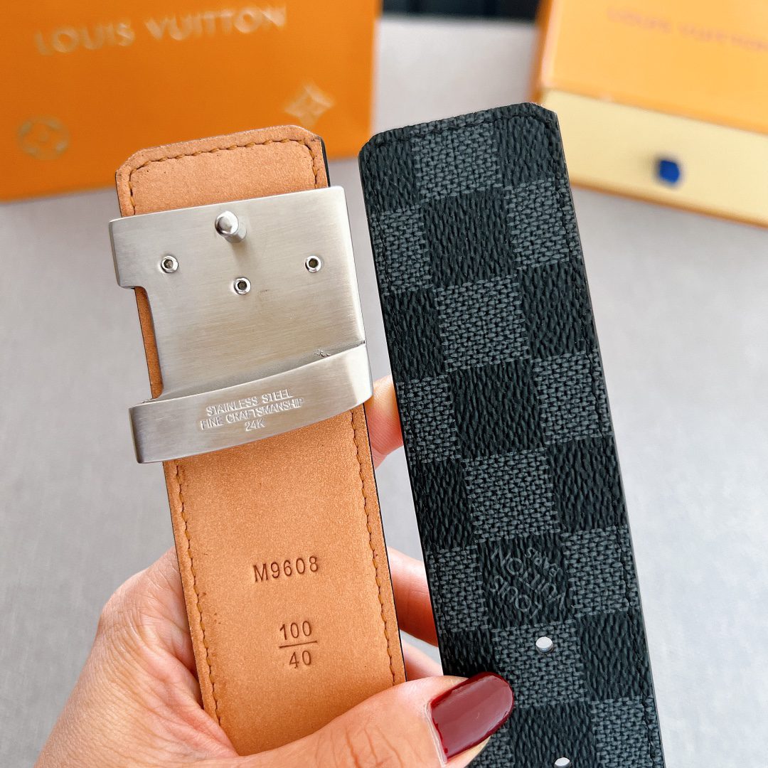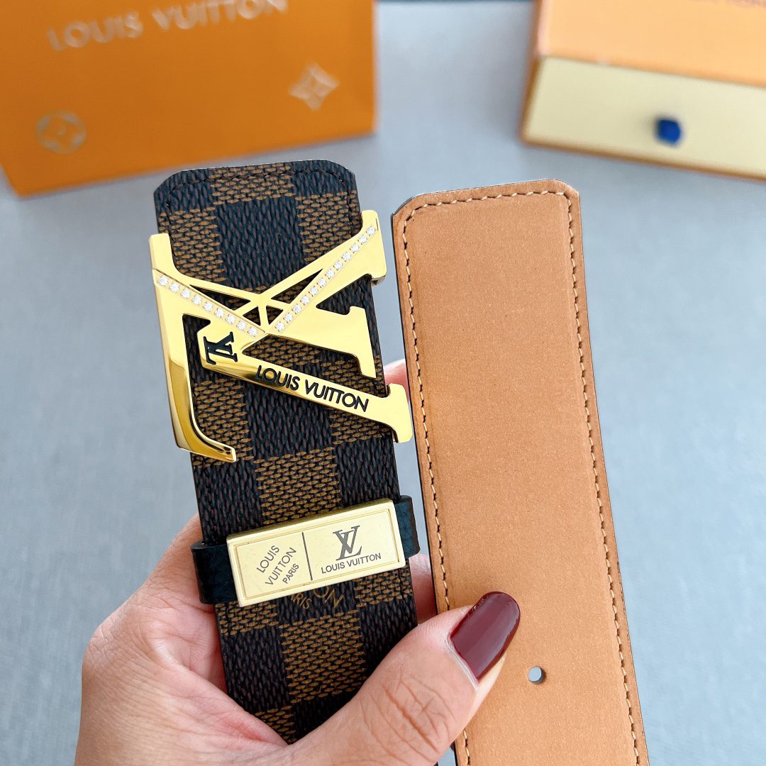 Belt LV Initiales 40mm new English double layer diamond steel buckle counter belt printing