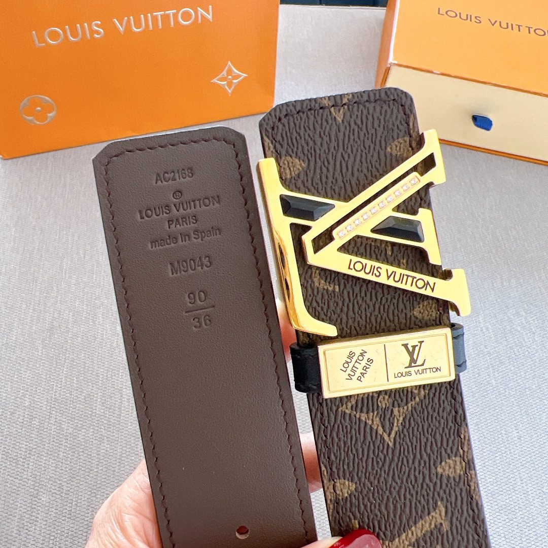 LV Initiales 40mm new English double-layer diamond-encrusted steel buckle counter belt printed double-sided style interprets two classics: Monogram shows the