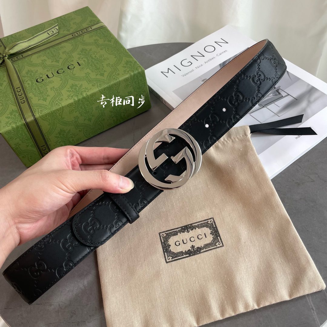 Belt Gucci width 4.0cm, vintage silver GG buckle, imported pigskin pattern, leather wear resistance, cost-effective