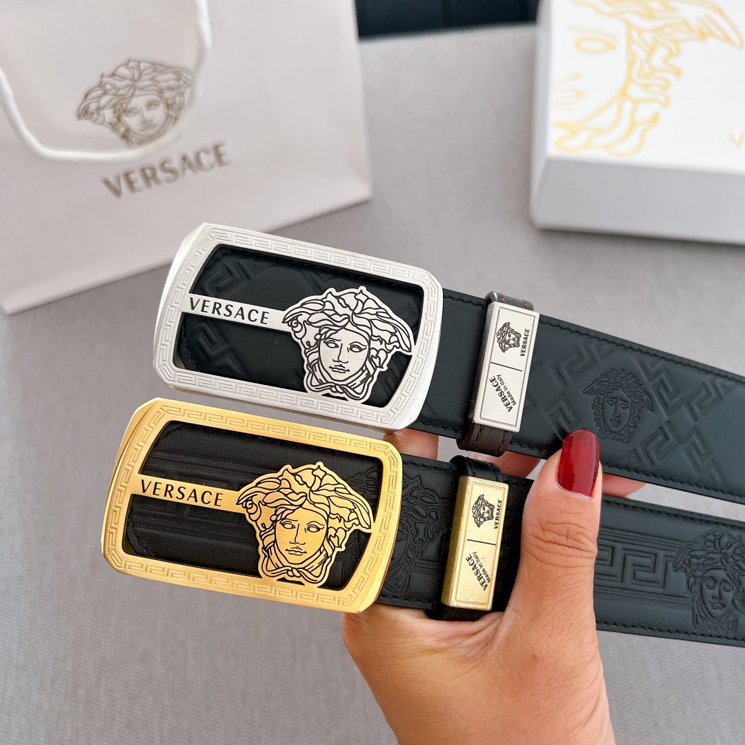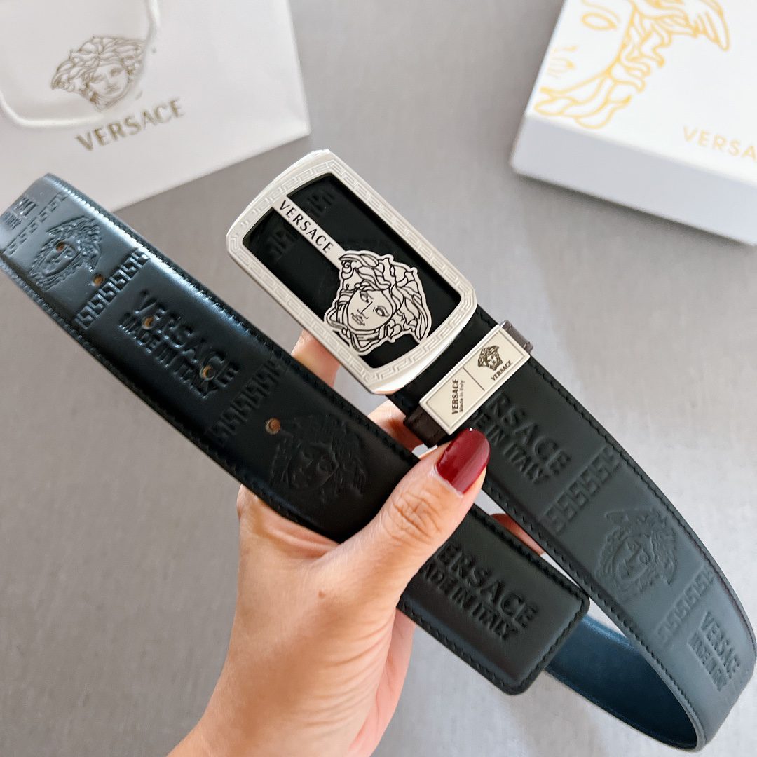Versace steel buckle double-sided cowhide ball-grain cowhide, high-end original belt, available at European counters, double-sided first-layer cowhide imported from Italy,