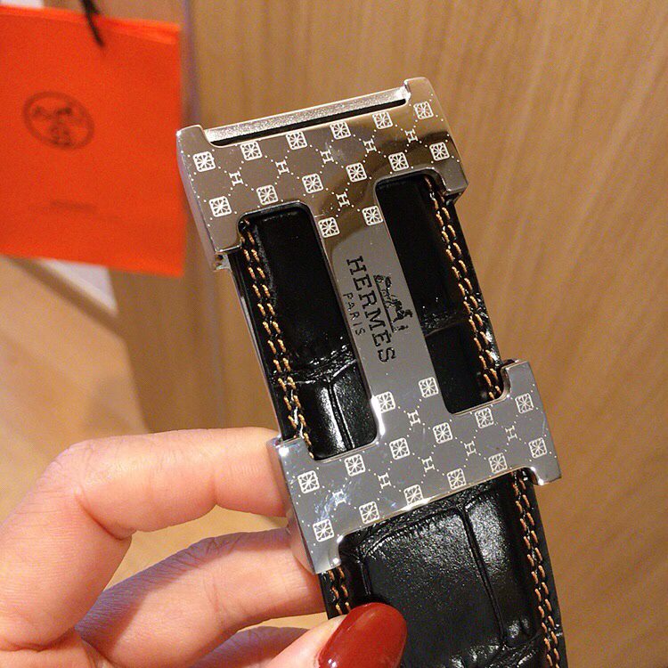 Belt Hermes cm double-sided original leather shark pattern, Hermes special steel buckle, with