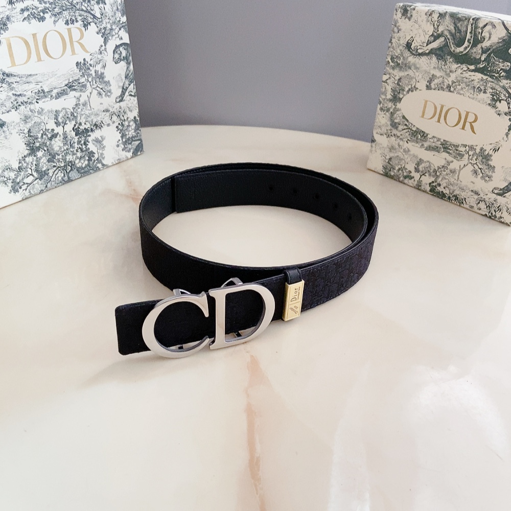 Dior’s 550mm double-sided belt combines elegance and modern style. One side is made of black oblique Gravity print effect cowhide,