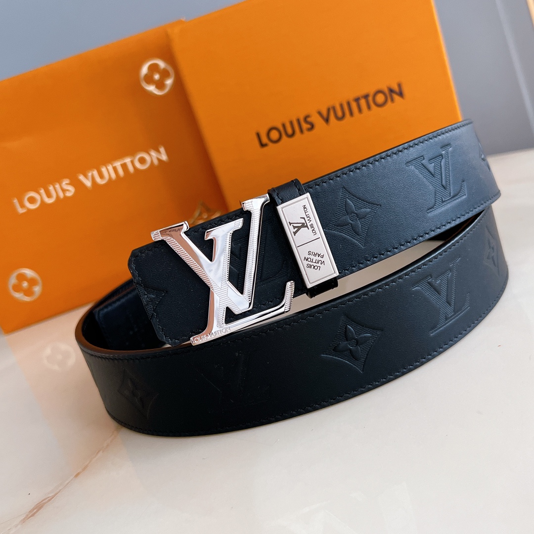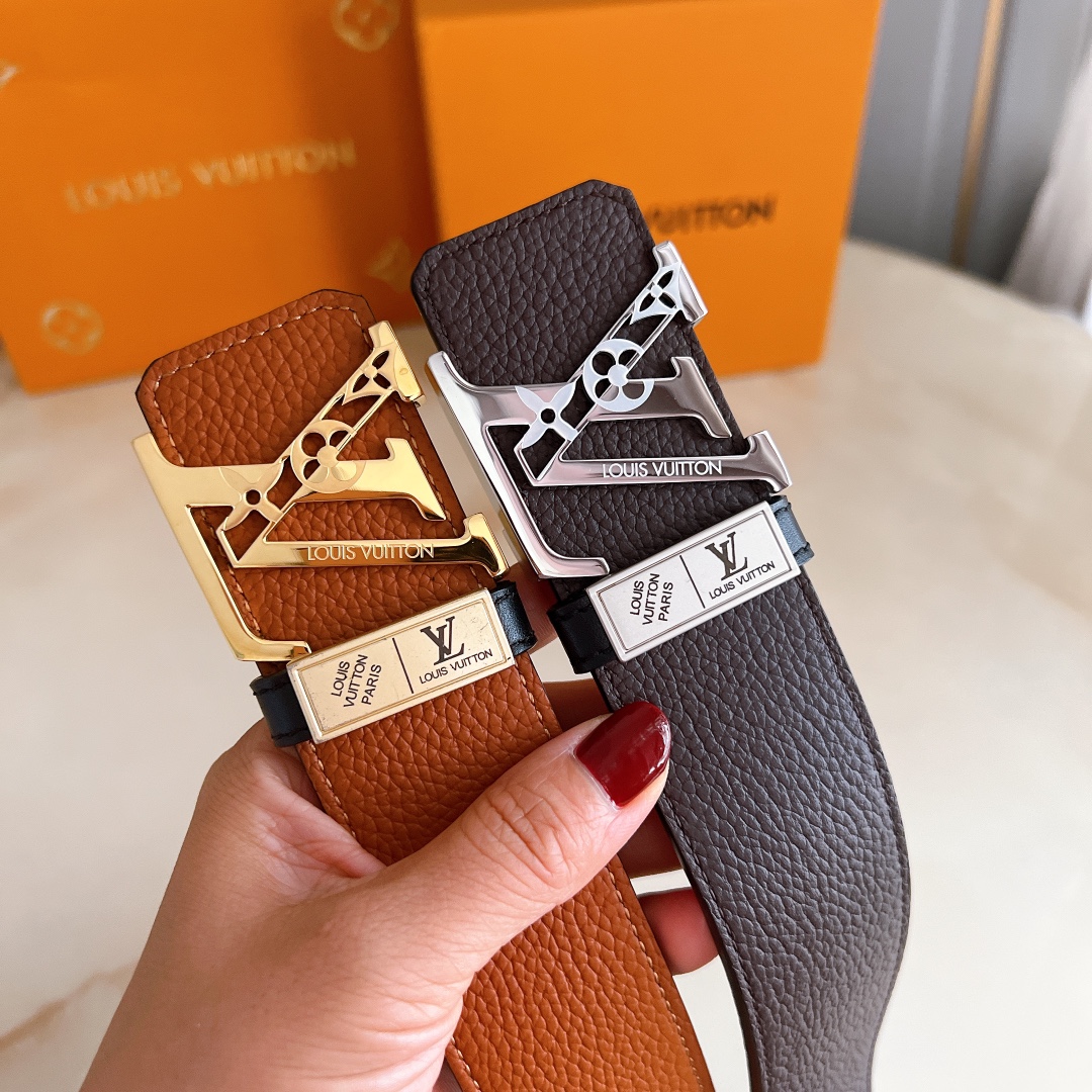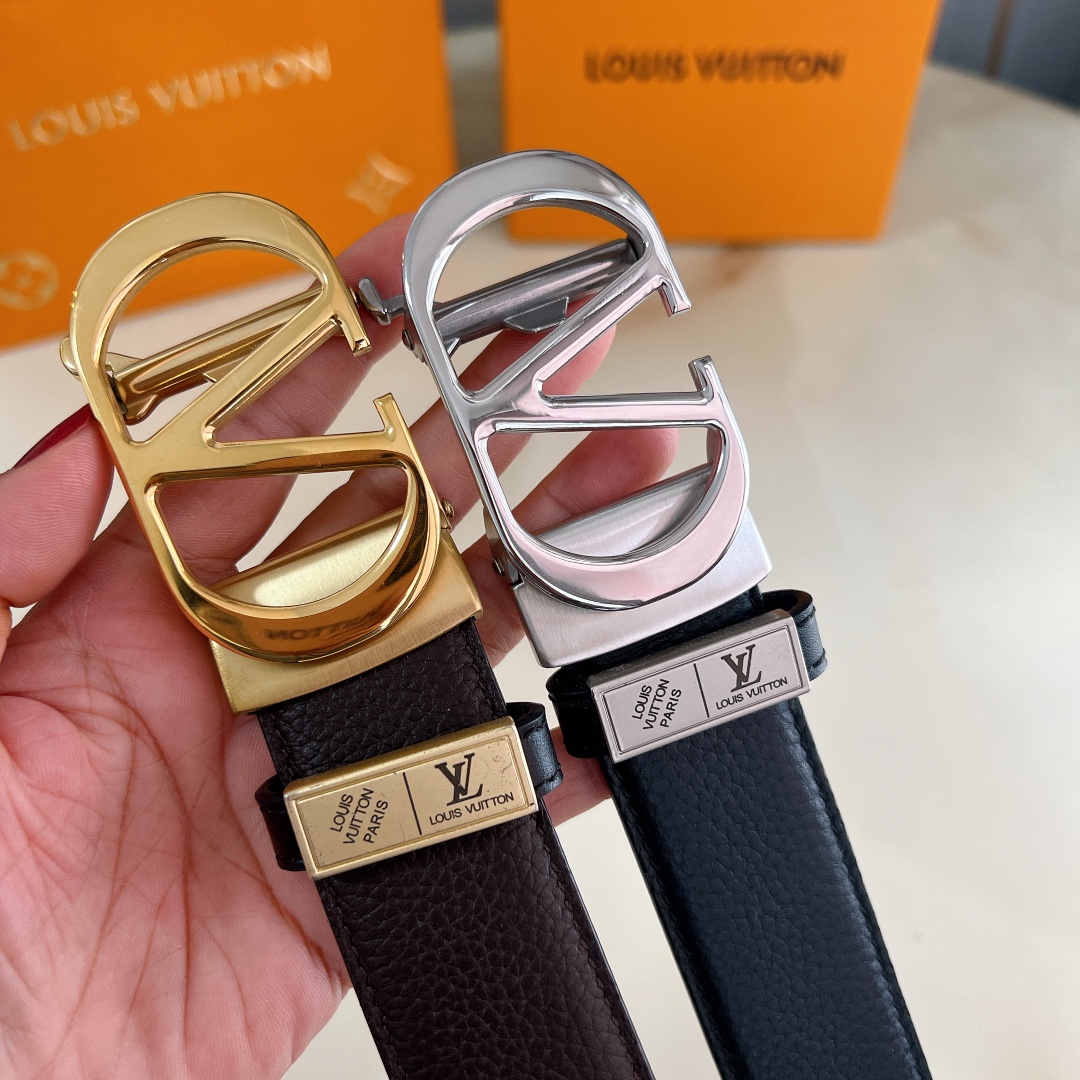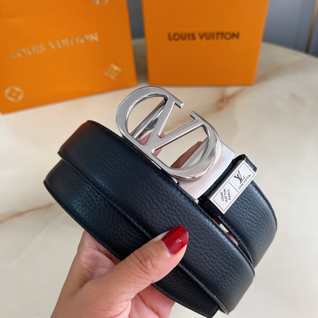 LV automatic belt steel buckle original leather with lychee texture Initiales mm, the belt interprets two classic styles in a
