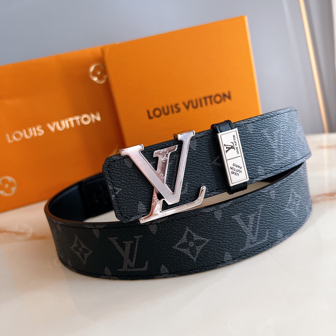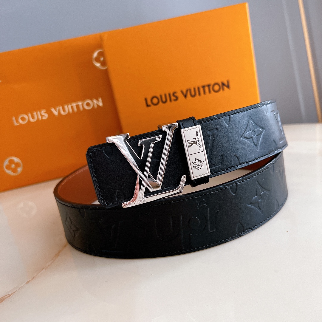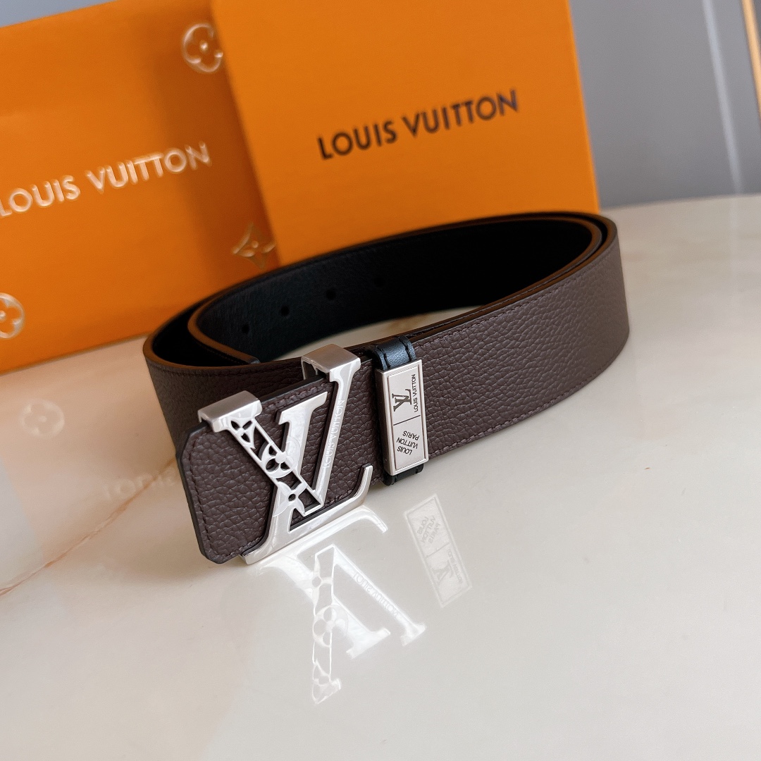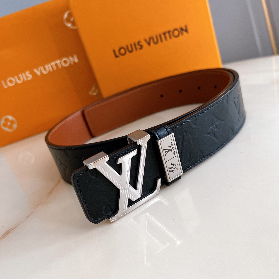 LV automatic belt steel buckle original leather with lychee texture Initiales mm, the belt interprets two classic styles in a