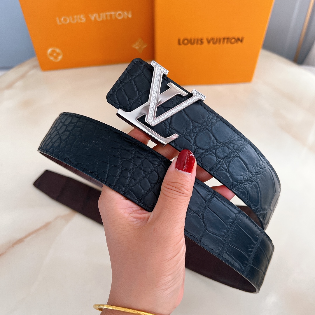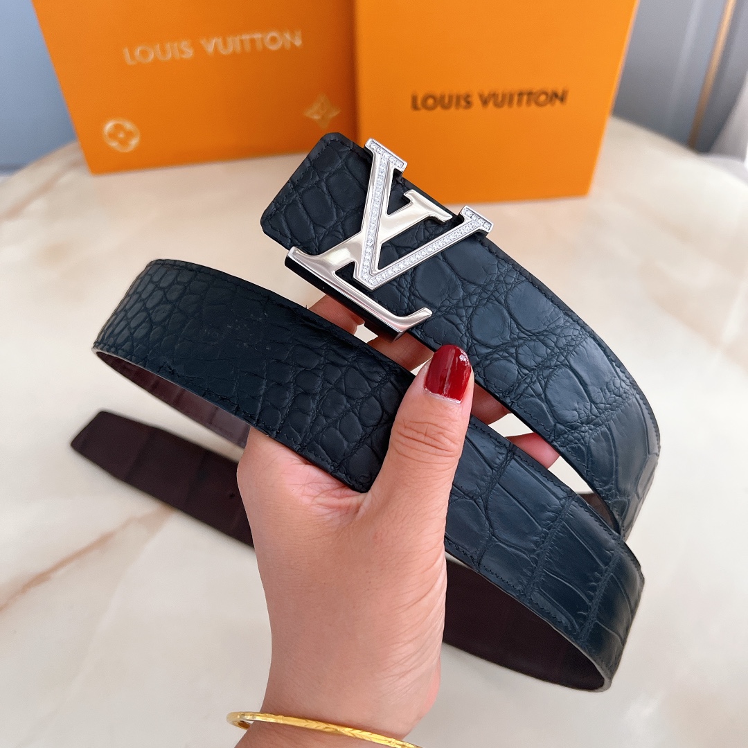 Belt LV Initiales 40mm new diamond-encrusted steel buckle counter belt made of double-sided crocodile leather